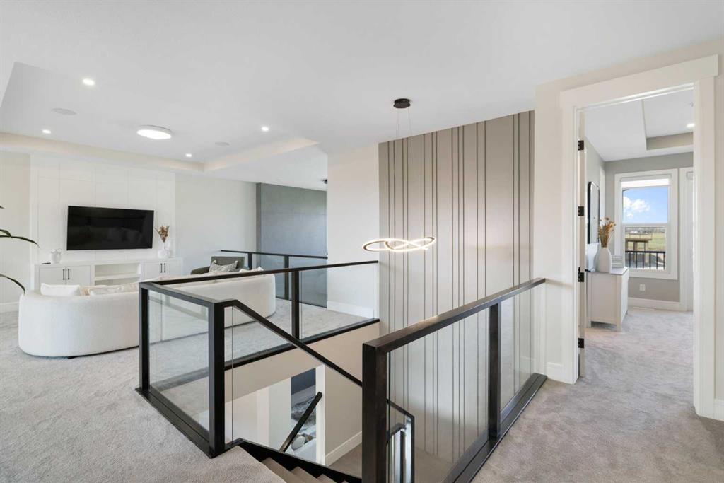 BRAND NEW LUXURY HOME BACKING ONTO THE LAKE!! HUGE 9500+ SQFT LOT!! QUAD ATTACHED GARAGE!! 10FT MAIN FLOOR CEILINGS!! 9FT UPPER LEVEL AND BASEMENT!! MAIN FLOOR BEDROOM WITH FULL BATH!! 4790 SQFT OF LIVING SPACE!! 7 BEDROOMS + 5 BATHS!! Experience LAKESIDE GRANDEUR in this stunning newly built home designed for modern living and timeless elegance! The main floor welcomes you with a bright LIVING AREA WITH OPEN-TO-BELOW CEILING, a cozy GAS FIREPLACE, and a DINING AREA WITH DECK ACCESS overlooking the lake. The GOURMET KITCHEN features a large island, BUILT-IN APPLIANCES, abundant cabinetry, a SPICE KITCHEN, and a spacious PANTRY—perfect for entertaining and family gatherings. Upstairs offers 4 BEDROOMS + BONUS ROOM, including a PRIMARY SUITE WITH LAKE-VIEW BALCONY, 5PC ENSUITE, and WALK-IN CLOSET. Another bedroom also features a PRIVATE ENSUITE AND WALK-IN CLOSET, while two additional bedrooms share a JACK & JILL 4PC BATH. The FULLY DEVELOPED BASEMENT adds even more living space with 2 BEDROOMS (BOTH WITH WALK-IN CLOSETS), a GYM AREA, and a SPACIOUS LIVING ROOM alongside a 4PC BATH. ATTACHED DOUBLE GARAGE is 42FT deep. Located in the heart of CHESTERMERE, steps from the LAKE, GOLF COURSE, and all nearby AMENITIES, this home perfectly combines LUXURY, FUNCTIONALITY, AND LOCATION—a true dream home on the water!