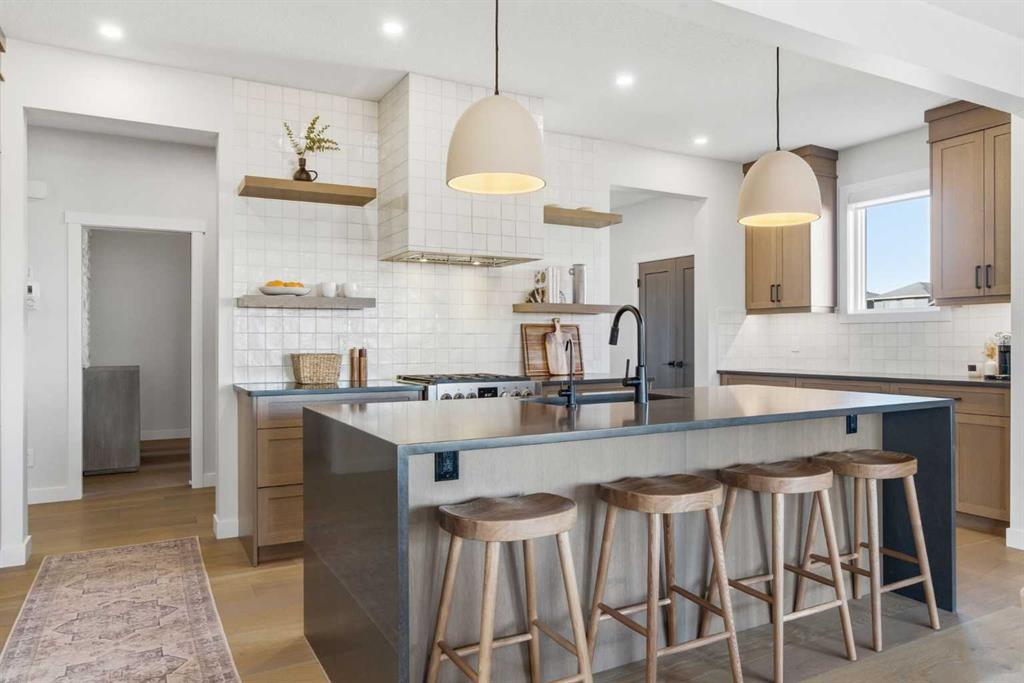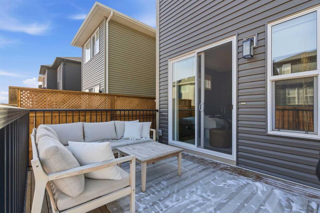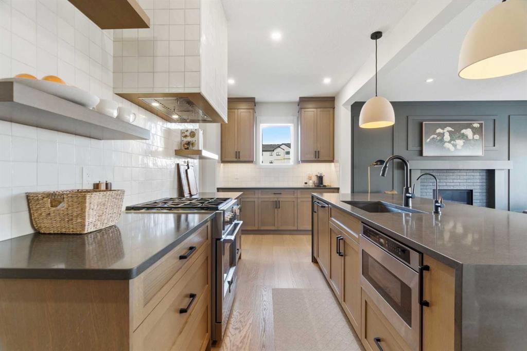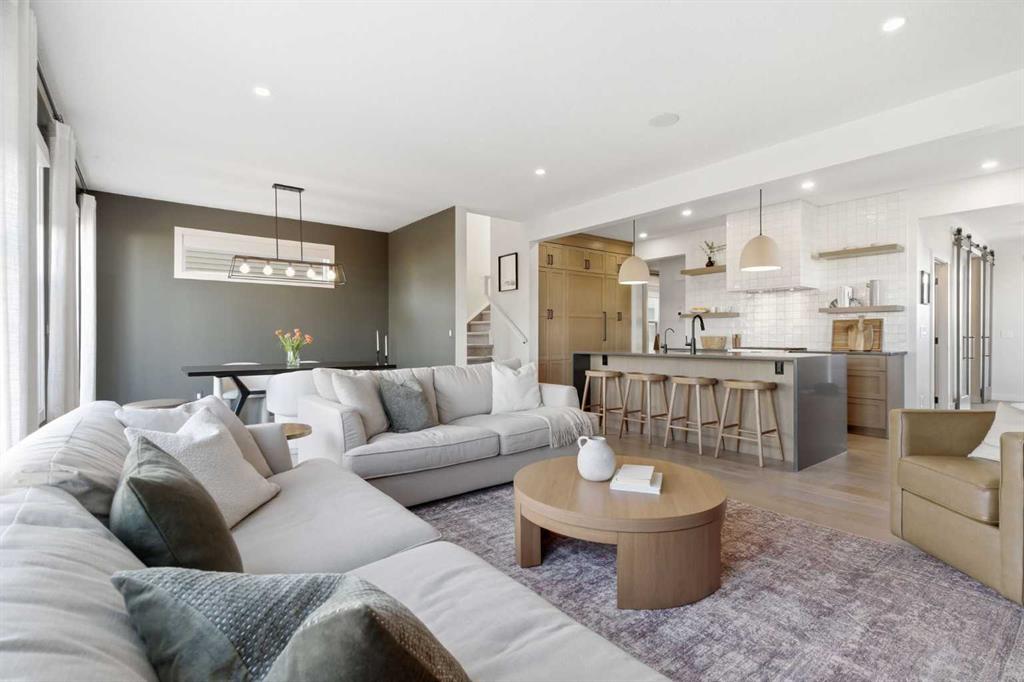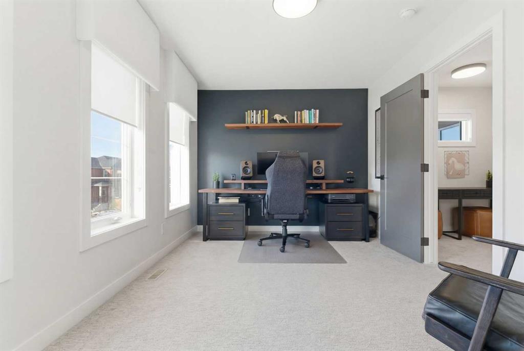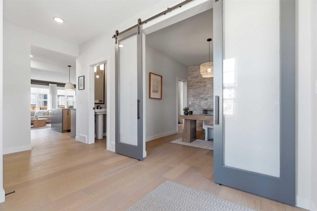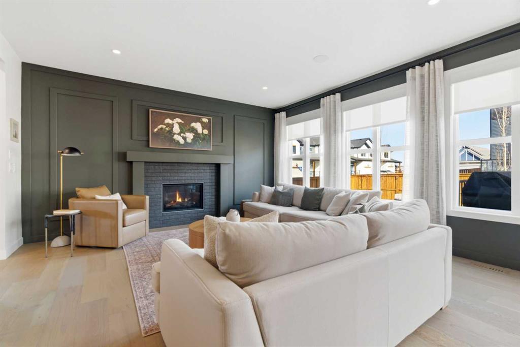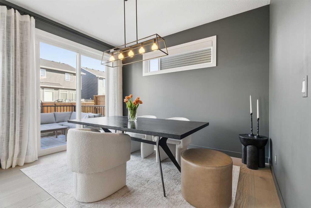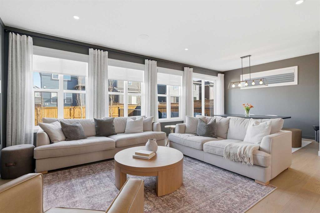 4 BEDROOMS | 3 1/2 BATHROOMS | 2-STOREY | 3,600+ SQFT OF LIVING SPACE | DOUBLE ATTACHED GARAGE | FULLY DEVELOPED BASEMENT | CORNER LOT | Welcome to this stunning Trico-built former showhome located in the sought-after community of Sirocco at Pine Creek, offering over 3,600 sqft of beautifully finished living space with 4 bedrooms and 3.5 bathrooms. Situated on a corner lot, this home is loaded with high-end upgrades and thoughtfully designed for both everyday living and entertaining. As you enter the home, you are greeted by soaring 9-foot ceilings and rich white oak hardwood flooring that flows throughout the main level. The bright and inviting living room features a gas fireplace and elegant decorative wall paneling, creating a warm and refined space to gather. Just off the foyer, a versatile flex room with a glass barn door and striking stone feature wall provides the perfect space for a home office or formal dining room. The heart of the home is the designer kitchen, showcasing white oak cabinetry with integrated appliances, including a hidden fridge and dishwasher, high-end gas range, built-in microwave, and a statement backsplash. Quartz countertops with rounded edges, a large island with waterfall edge and flush eating bar, and full-height cabinetry with crown moulding complete this stunning space. The adjacent dining area opens onto the rear deck and fully fenced landscaped backyard with a stone patio and built-in fire pit - the perfect place for entertaining. A walkthrough butler’s pantry leads to the mudroom with built-in lockers and convenient access to the double attached garage. Upstairs, you’ll find a spacious bonus room with tray ceilings and large windows, along with a convenient study nook. The luxurious primary retreat features a statement stone feature wall, a large walk-in closet with direct access to the laundry room, and a spa-inspired 5-piece ensuite with dual vanities, soaker tub, and a glass shower with bench. Two additional bedrooms, each with their own walk-in closet, and a full 4-piece bathroom complete this level. The fully developed basement with 9-foot ceilings offers even more living space, including a large recreation room with play area, a fourth bedroom, and a full bathroom, making it ideal for guests or a growing family. Additional upgrades include central air conditioning, built-in sound system on the main floor and basement, CAT5 wiring, electronic blinds, and sump pump. Located close to parks, playgrounds, and pathways, this exceptional home offers luxury, space, and functionality in one of Calgary’s newest and most desirable communities. Book your showing today!