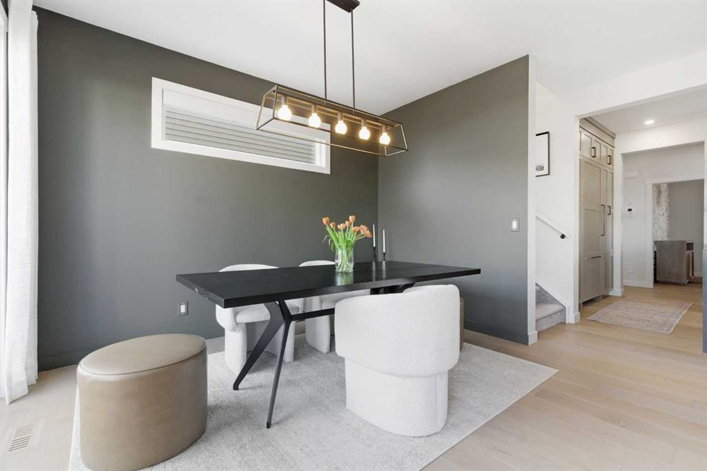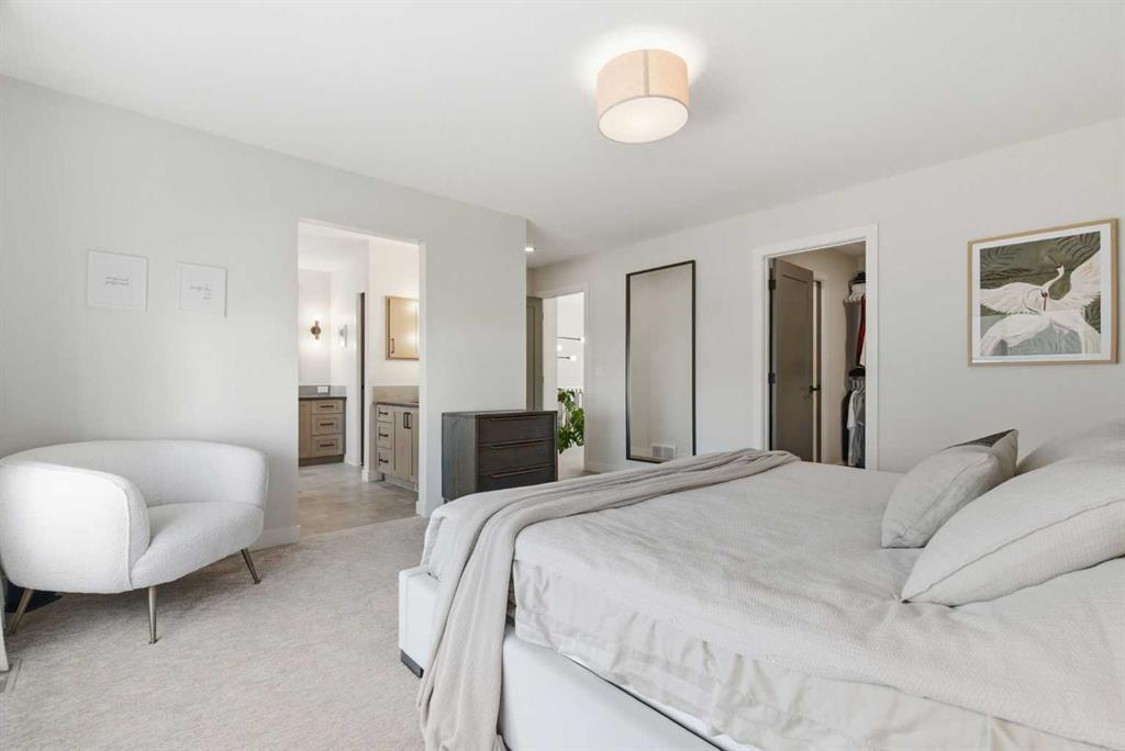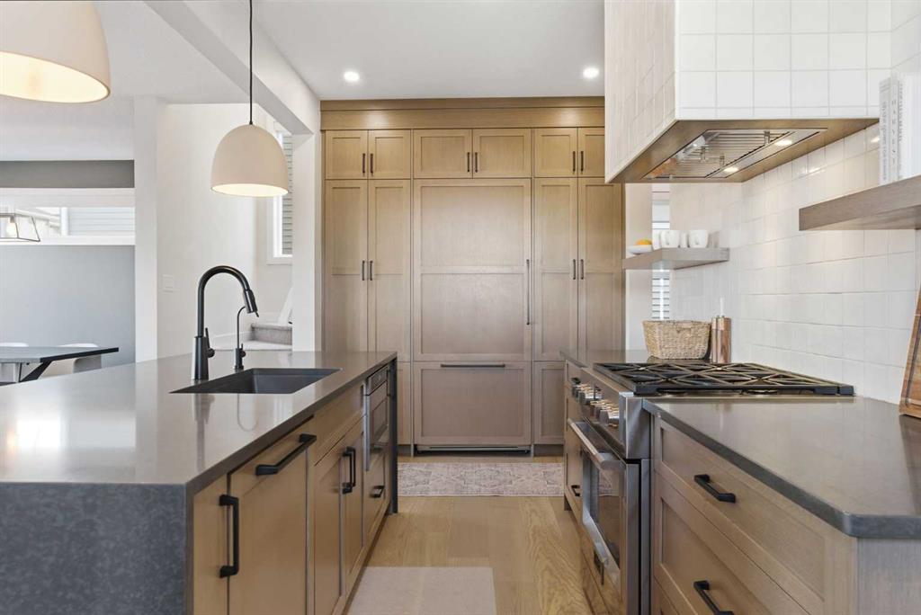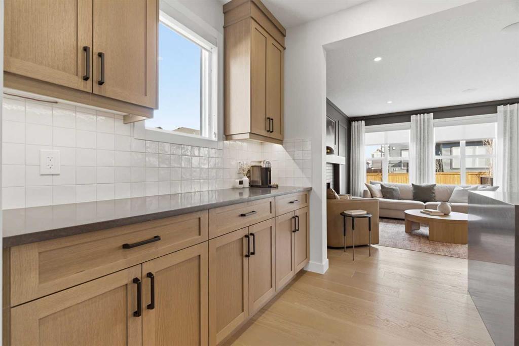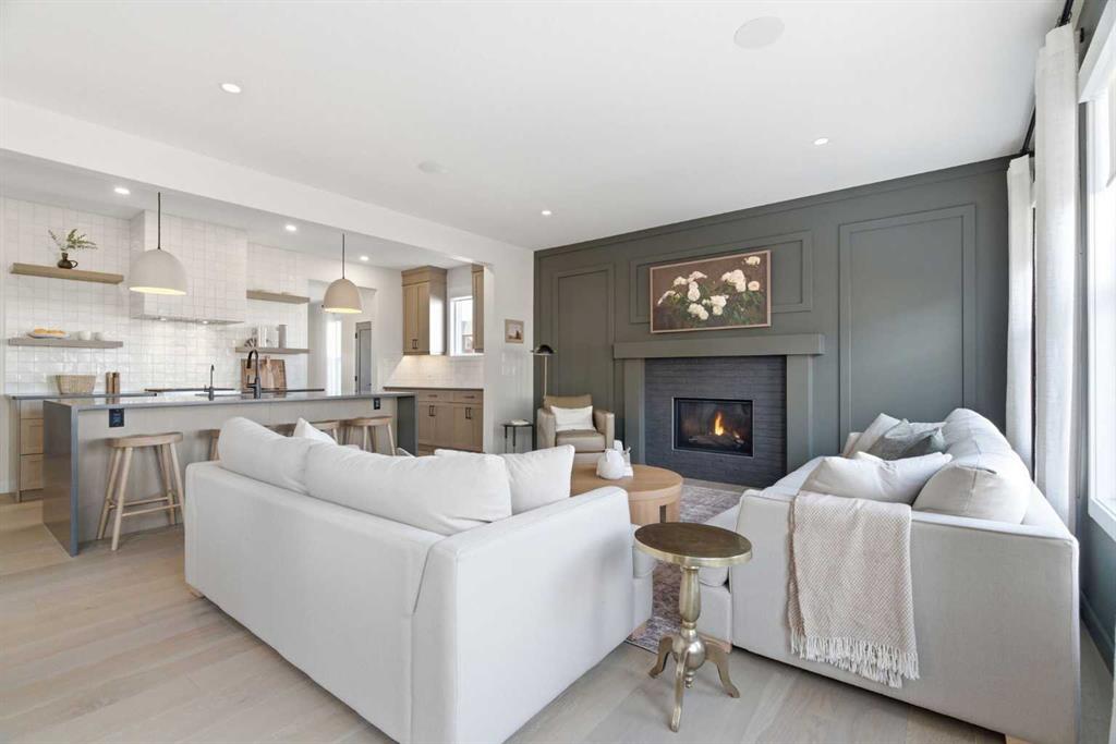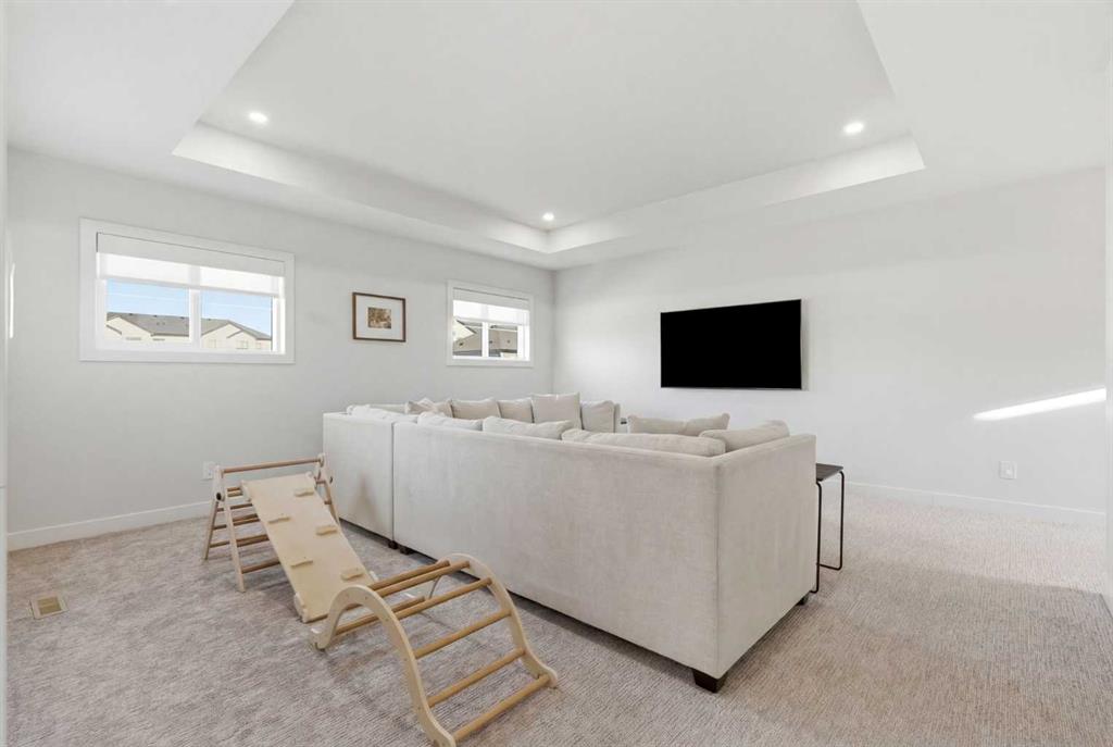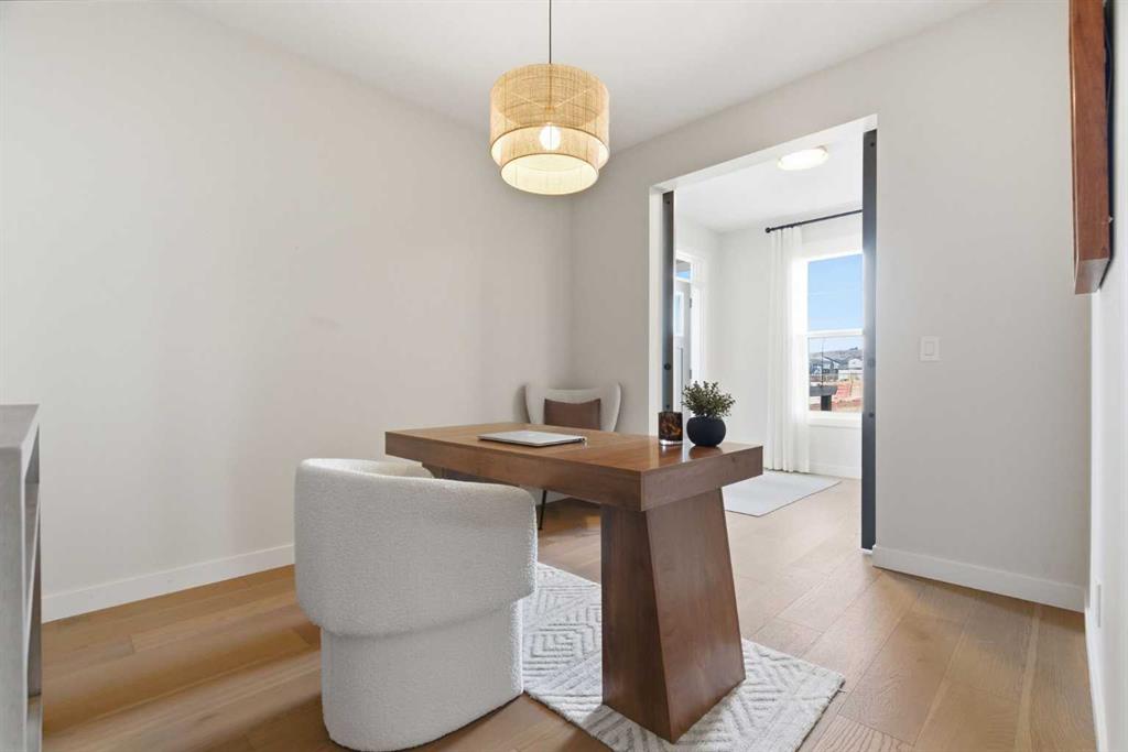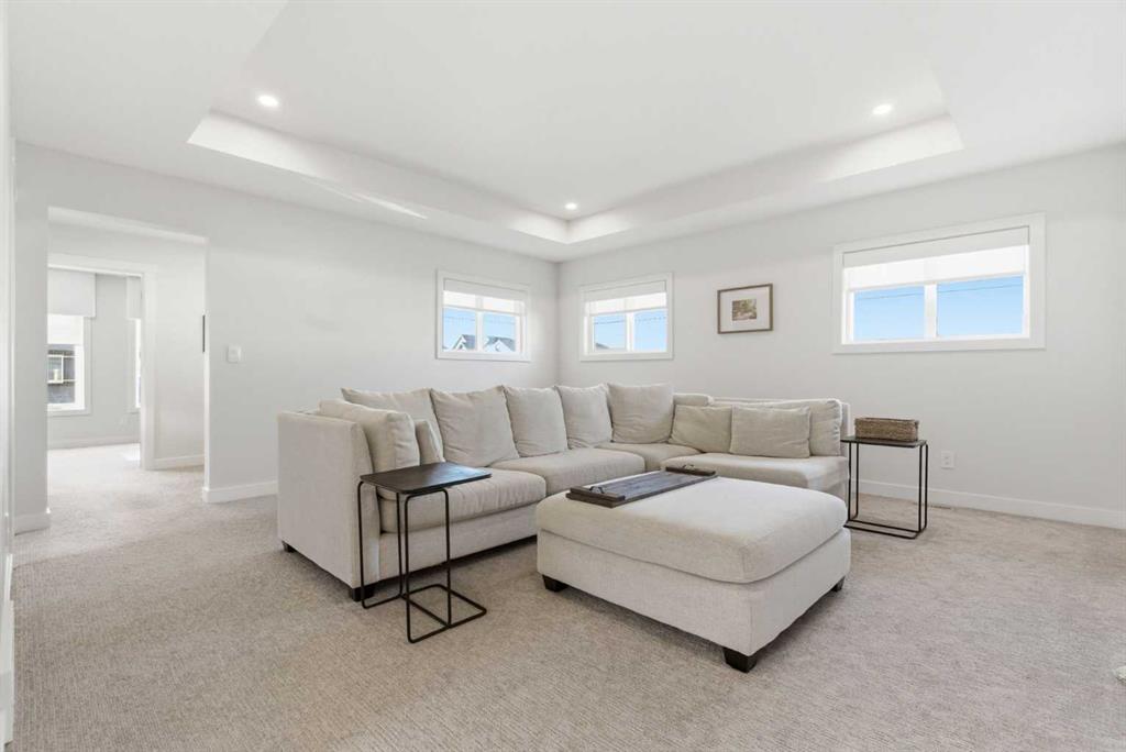 4 BEDROOMS | 3 1/2 BATHROOMS | 2-STOREY | 3,600+ SQFT OF LIVING SPACE | DOUBLE ATTACHED GARAGE | FULLY DEVELOPED BASEMENT | CORNER LOT | Welcome to this stunning Trico-built former showhome located in the sought-after community of Sirocco at Pine Creek, offering over 3,600 sqft of beautifully finished living space with 4 bedrooms and 3.5 bathrooms. Situated on a corner lot, this home is loaded with high-end upgrades and thoughtfully designed for both everyday living and entertaining. As you enter the home, you are greeted by soaring 9-foot ceilings and rich white oak hardwood flooring that flows throughout the main level. The bright and inviting living room features a gas fireplace and elegant decorative wall paneling, creating a warm and refined space to gather. Just off the foyer, a versatile flex room with a glass barn door and striking stone feature wall provides the perfect space for a home office or formal dining room. The heart of the home is the designer kitchen, showcasing white oak cabinetry with integrated appliances, including a hidden fridge and dishwasher, high-end gas range, built-in microwave, and a statement backsplash. Quartz countertops with rounded edges, a large island with waterfall edge and flush eating bar, and full-height cabinetry with crown moulding complete this stunning space. The adjacent dining area opens onto the rear deck and fully fenced landscaped backyard with a stone patio and built-in fire pit - the perfect place for entertaining. A walkthrough butler’s pantry leads to the mudroom with built-in lockers and convenient access to the double attached garage. Upstairs, you’ll find a spacious bonus room with tray ceilings and large windows, along with a convenient study nook. The luxurious primary retreat features a statement stone feature wall, a large walk-in closet with direct access to the laundry room, and a spa-inspired 5-piece ensuite with dual vanities, soaker tub, and a glass shower with bench. Two additional bedrooms, each with their own walk-in closet, and a full 4-piece bathroom complete this level. The fully developed basement with 9-foot ceilings offers even more living space, including a large recreation room with play area, a fourth bedroom, and a full bathroom, making it ideal for guests or a growing family. Additional upgrades include central air conditioning, built-in sound system on the main floor and basement, CAT5 wiring, electronic blinds, and sump pump. Located close to parks, playgrounds, and pathways, this exceptional home offers luxury, space, and functionality in one of Calgary’s newest and most desirable communities. Book your showing today!