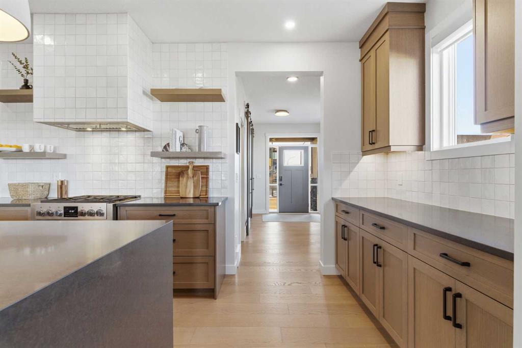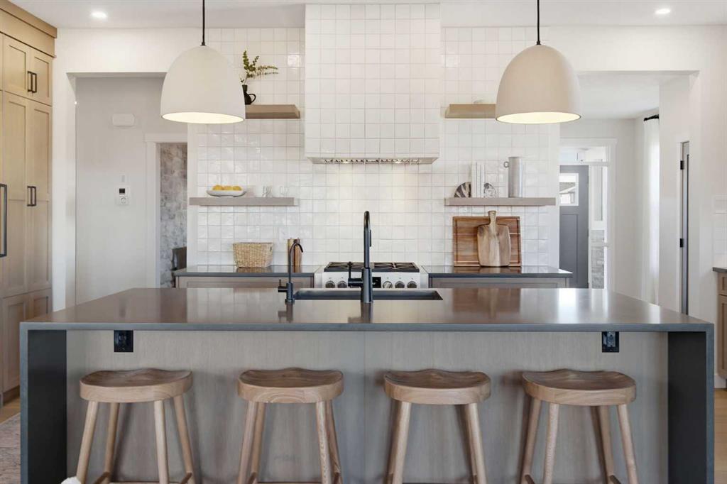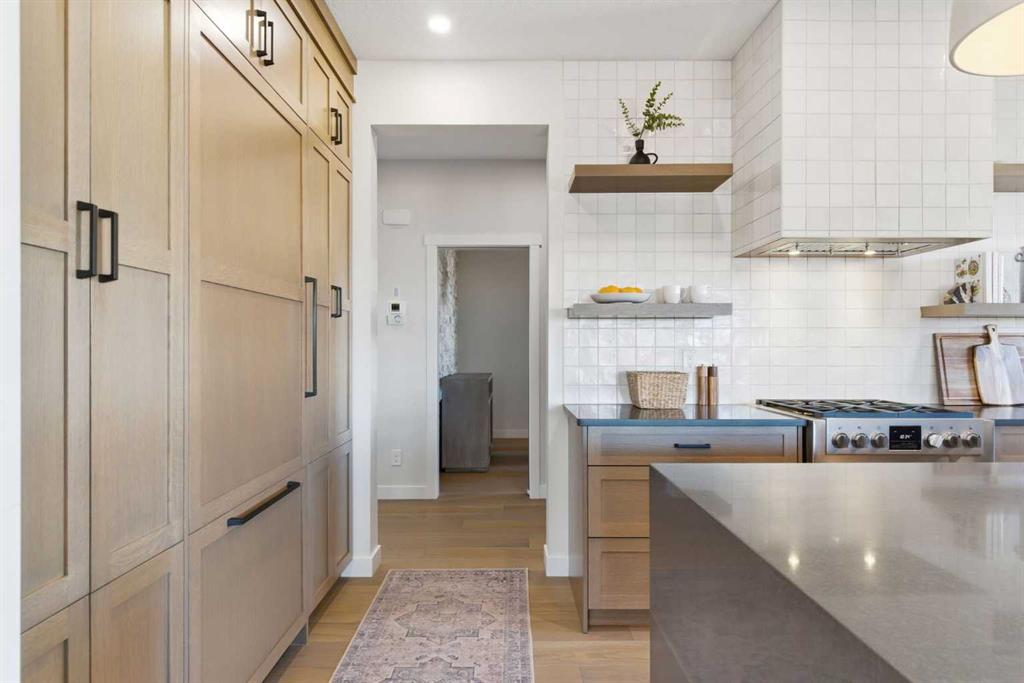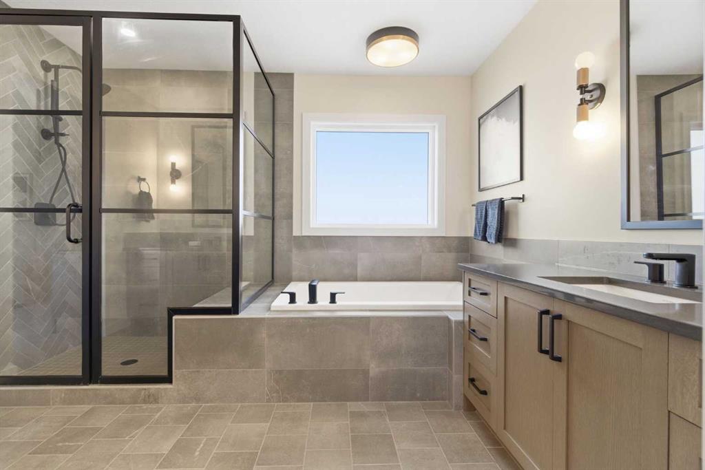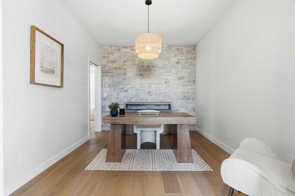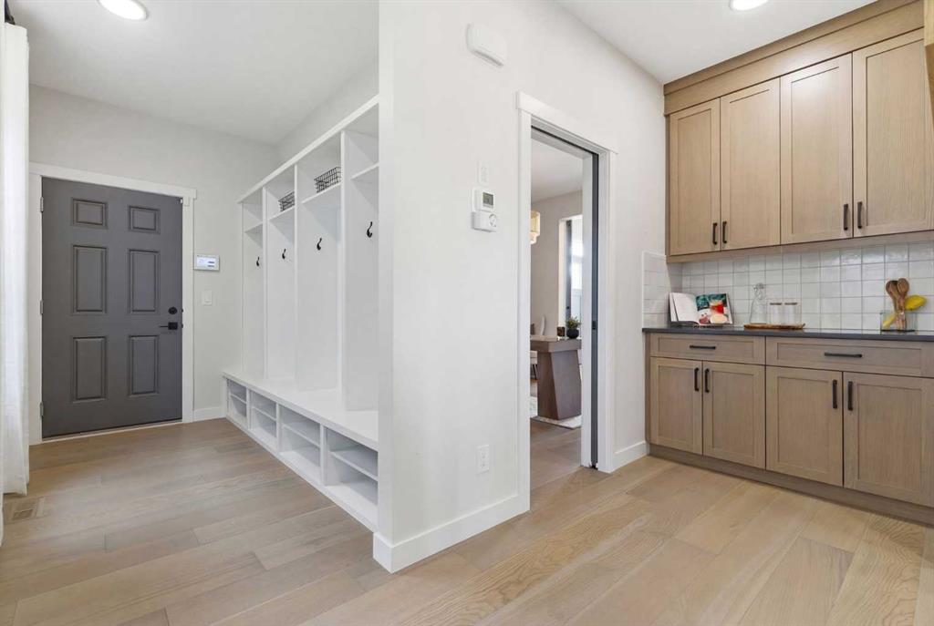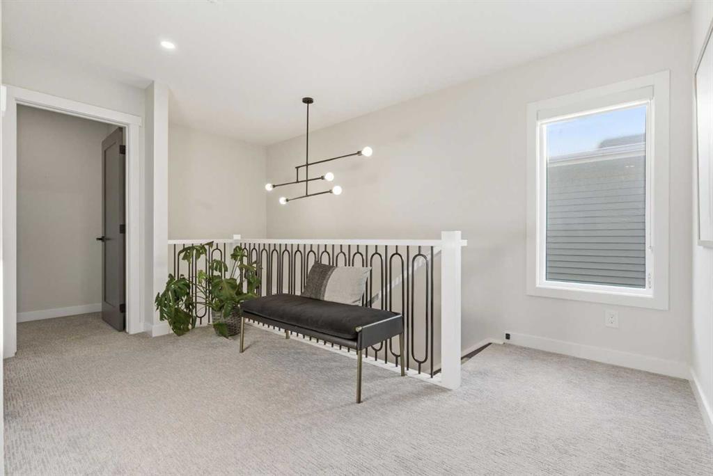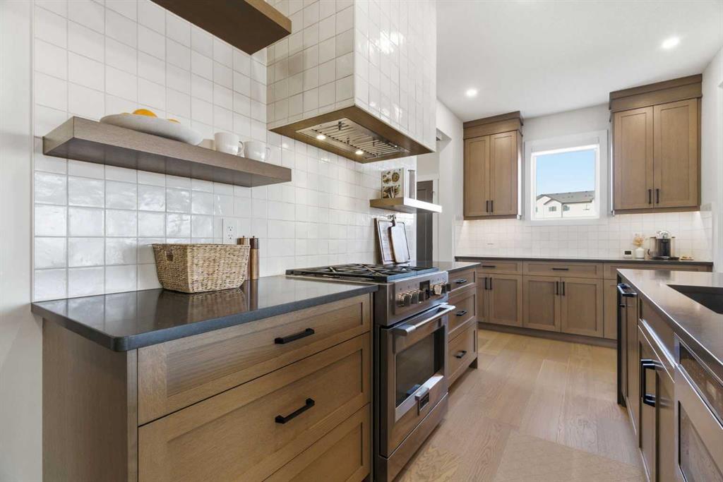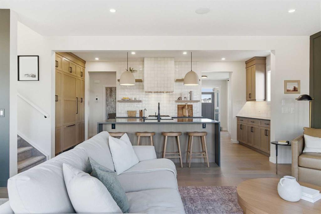 4 BEDROOMS | 3 1/2 BATHROOMS | 2-STOREY | 3,600+ SQFT OF LIVING SPACE | DOUBLE ATTACHED GARAGE | FULLY DEVELOPED BASEMENT | CORNER LOT | Welcome to this stunning Trico-built former showhome located in the sought-after community of Sirocco at Pine Creek, offering over 3,600 sqft of beautifully finished living space with 4 bedrooms and 3.5 bathrooms. Situated on a corner lot, this home is loaded with high-end upgrades and thoughtfully designed for both everyday living and entertaining. As you enter the home, you are greeted by soaring 9-foot ceilings and rich white oak hardwood flooring that flows throughout the main level. The bright and inviting living room features a gas fireplace and elegant decorative wall paneling, creating a warm and refined space to gather. Just off the foyer, a versatile flex room with a glass barn door and striking stone feature wall provides the perfect space for a home office or formal dining room. The heart of the home is the designer kitchen, showcasing white oak cabinetry with integrated appliances, including a hidden fridge and dishwasher, high-end gas range, built-in microwave, and a statement backsplash. Quartz countertops with rounded edges, a large island with waterfall edge and flush eating bar, and full-height cabinetry with crown moulding complete this stunning space. The adjacent dining area opens onto the rear deck and fully fenced landscaped backyard with a stone patio and built-in fire pit - the perfect place for entertaining. A walkthrough butler’s pantry leads to the mudroom with built-in lockers and convenient access to the double attached garage. Upstairs, you’ll find a spacious bonus room with tray ceilings and large windows, along with a convenient study nook. The luxurious primary retreat features a statement stone feature wall, a large walk-in closet with direct access to the laundry room, and a spa-inspired 5-piece ensuite with dual vanities, soaker tub, and a glass shower with bench. Two additional bedrooms, each with their own walk-in closet, and a full 4-piece bathroom complete this level. The fully developed basement with 9-foot ceilings offers even more living space, including a large recreation room with play area, a fourth bedroom, and a full bathroom, making it ideal for guests or a growing family. Additional upgrades include central air conditioning, built-in sound system on the main floor and basement, CAT5 wiring, electronic blinds, and sump pump. Located close to parks, playgrounds, and pathways, this exceptional home offers luxury, space, and functionality in one of Calgary’s newest and most desirable communities. Book your showing today!