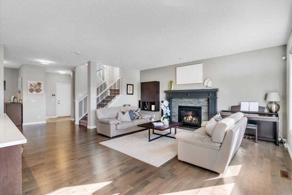 The fully finished walkout basement offers incredible flexibility with a fourth bedroom, a modern bathroom with a tiled stand-up shower, a private office ,and a large rec room that could serve as a media room. Step outside to the huge backyard — ideal for kids, pets, and entertaining — complete with a cozy fire pit area. Additional features include central A/C, dual newer furnaces, a newer hot water tank, an oversized driveway, & triple-pane windows throughout. Conveniently located with just 20 minutes to Calgary, 30 minutes to Downtown, and only an hour from the mountains, this home truly offers the best of both worlds. This is your opportunity to own a stunning home with a modern spacious layout on an expansive lot with gorgeous views.
