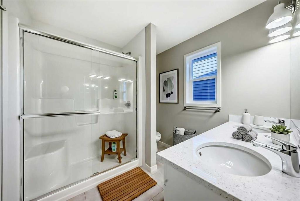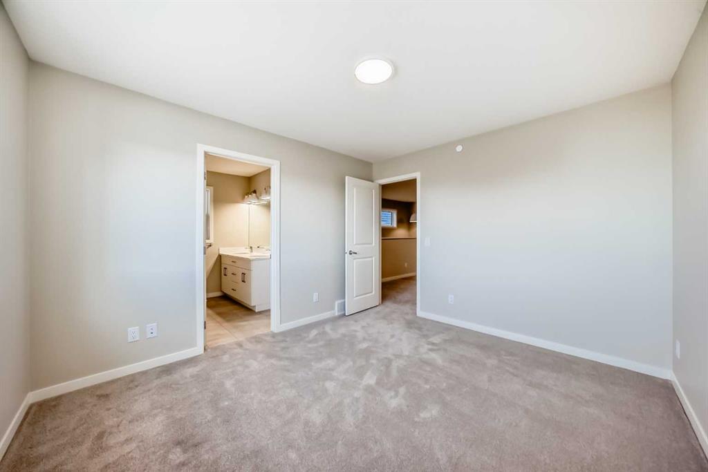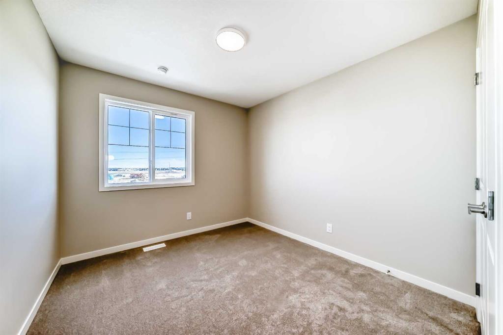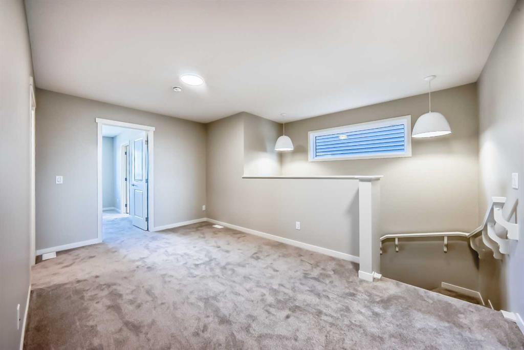 Meet the brand-new “Heath,” a fresh take on a beloved layout that blends smart design with everyday comfort—now in Hotchkiss. Step inside to a bright, open main floor finished in warm luxury vinyl plank, with a versatile front flex room that’s perfect for a home office, homework zone, or cozy reading nook. The rear of the home opens up beautifully to an inviting living room and an oversized dining area—ideal for weeknight dinners, hosting friends, and everything in between. At the heart of it all, the chef-inspired kitchen delivers the look buyers love: wood-grain cabinetry extended to the bulkhead, crisp white quartz countertops, a timeless subway tile backsplash, stainless steel appliances, a convenient microwave-over-the-range, and a large island that makes prep, snacks, and conversation effortless. A generous rear window pulls in great natural light, and the practical back entry keeps daily comings and goings organized and easy. Upstairs, a centrally located loft creates a true second living space—perfect as a TV zone, play area, or quiet spot to unwind—while also providing smart separation between bedrooms. The spacious primary retreat includes a walk-in closet and a spa-inspired 4-piece ensuite with dual sinks. Two additional bedrooms are nicely sized and share a well-appointed 4-piece bath, while the upper laundry room keeps chores convenient (and out of sight). A side/secondary entrance adds valuable flexibility for future possibilities like a guest space, in-law setup, or private lower-level living area (subject to city/municipal approvals and permitting). Outside, the landscaping is complete—front and back—so you can enjoy the home from day one, with finished sod, mulched side yards, and thoughtfully selected trees and shrubs that elevate curb appeal. And the setting ties it all together. Hotchkiss is designed around wide-open skies, connected green spaces, and everyday convenience—highlighted by a central wetland with boardwalks and a planned network of parks and pathways. You’ll love the quick access to major routes like Stoney Trail and 22X, plus nearby shopping, schools, and amenities, with Seton and the South Health Campus just minutes away. From morning walks to relaxed evenings at home, the Heath in Hotchkiss offers a lifestyle that’s easy to settle into and hard to outgrow.