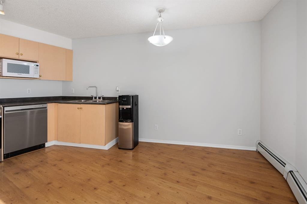 Perfect for First-Time Buyers, Retirees, and Investors! This well-laid-out apartment is conveniently located near the entry door and features an open, functional floor plan. Laminate flooring throughout gives the space a warm and inviting feel. The kitchen offers natural maple-style cabinetry, black countertops, and stainless steel appliances, including a brand-new refrigerator and newer dishwasher. The unit has also been freshly painted, making it truly move-in ready.A versatile flex room provides the ideal space for a home office and can easily be converted into a second bedroom if desired. Enjoy a bright, sunny interior thanks to the desirable south exposure, along with the added convenience of in-suite laundry.Step outside to your private patio with pleasant rear views and enjoy the morning sun.Great location: Close to public transportations, Only 15 minutes to downtown, Minutes from East Hills Shopping Centre (Costco, Walmart, Cineplex, major banks, and restaurants) , and beautiful Elliston Park (home of GlobalFest Fireworks), Easy north/south access via Stoney Trail; Additional highlights :Small pets allowed with board approval, All utilities included in condo fee, Move-in ready condition. Don’t miss out—book your showing today!