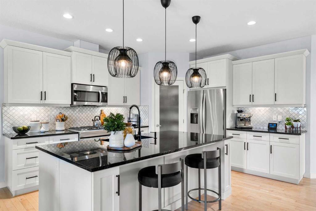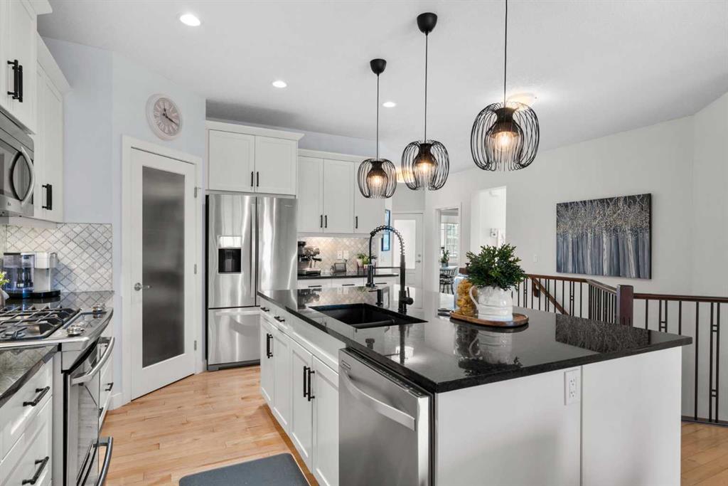 END-UNIT BUNGALOW, LOW-MAINTENACE lifestyle, and a CLEAN PRE-HOME INSPECTION – exceptional VILLA living in Cochrane! Presenting 25 Fireside Landing anew with a fresh perspective and standout upgrades, this home truly stands out and is one you won’t want to miss! This stellar 3-bed + den, 3-bath Calbridge Home by La Vita Land is timeless with its stone and grey exterior siding façade, set on a 5,974 sq ft lot. Greeted by a thoughtfully recessed front porch, this tucked-in design offers a private sheltered entry from the elements and a welcoming curb appeal, and into an inviting foyer with maple hardwood flooring, modern baseboards, fresh paint tones, and elevated finishes throughout the home’s interior. Just off the entry, a sunlit den, currently occupied as an art studio, offers a versatile space ideal for a home office, creative retreat, or quiet flex room, and down the hall, smart living unfolds with a powder room and a mudroom-laundry combo with access from the insulated double-attached garage. The home opens beautifully into a bright kitchen, dining, and living room layout designed for effortless everyday living and when entertaining guests, where the kitchen shines with shaker cabinetry, sleek hardware, granite counters, s/s appliances, a centre island with seating, and a walk-in pantry. From there, the dining area flows into the living room, where a cozy fireplace anchors the room and large windows draw you toward the backyard. Privately positioned for rest and retreat, the king-sized primary bedroom is enhanced by a striking paneled feature wall, creating a serene sanctuary, with a spa-inspired 5-piece ensuite with dual vanities, soaker tub, walk-in shower, and water closet, all complemented by a large walk-in closet. Downstairs, the fully-finished lower level turns up the volume with a spacious family room ready for movie nights, playlists, and lively gatherings. Large enough to create two distinct zones, it’s styled with a home office but could easily transform into a games or bar area when hosting parties. Completing the lower level are two additional bedrooms, one which is staged as a home gym, offering flexible space for family, guests, or hobbies, along with a convenient 4-piece bathroom and extra-large, organized storage utility room providing practical space for seasonal items and overflow. 30 mins to the Rockies, with 63 acres of parks, green space, shops nearby, and quick Highway 1 access to Calgary, life balances ease and adventure. The beauty of villa living begins with peace of mind, as landscaping and snow removal are professionally managed, freeing you from all the upkeep. That freedom means more time to travel, rightsize, or simply embrace a lock-and-leave lifestyle without sacrificing or compromising comfort or space. At Clearbook Villa of Fireside, you’re not just buying a home; you’re choosing a lifestyle designed for ease, connection, and enjoying what matters.