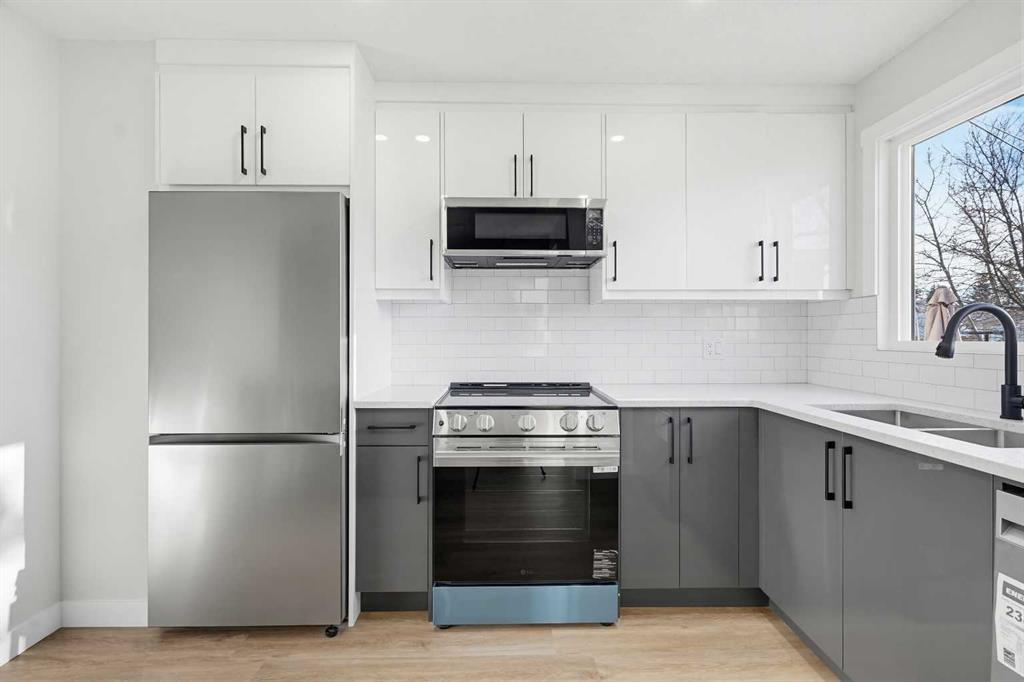 Welcome to this FULLY RENOVATED SPACIOUS semi-detached home with an ILLEGAL-SUITE (one bedroom) with SEPARATE LAUNDRY and SEPARATE ENTRANCE. Right beside Penbrooke Meadows School and a playground, easy access to 17th Avenue! Perfect for young families or an AMAZING INVESTMENT opportunity. Meticulously upgraded from top to bottom, the interior showcases BRAND NEW FLOORING, EXTERIOR DOORS, WINDOWS, INTERIOR FINISHINGS, BATHROOMS and sleek contemporary lighting. The open-concept main level features a stylish kitchen equipped with an ISLAND and STAINLESS STEEL appliances seamlessly connecting to the bright living area with a tile wall electric fireplace and dining area. Upstairs, three generously sized bedrooms and a beautifully updated four-piece bath provide comfortable family living. The lower level offers a bedrooms with a BUILT IN OFFICE DESK, another modern four-piece bath, and a spacious living area. This home needs nothing! It contains a high efficiency furnace and BRAND NEW HIGH efficiency hot water tank! Outside you have a NEWLY FENCED low maintenance yard and fire pit create an inviting space for relaxation or summer gatherings, backing onto a back alley with a gravel parking pad! all set within a landscaped setting. Situated right beside a park, playground, Penbrooke Meadow School, shopping, and with easy access to 17th Avenue. this move-in-ready home promises the very best of Penbrooke Meadows living. Immediate possession is available—book your showing today.