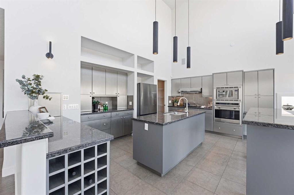 Welcome to a Lupi-designed ARCHITECTURAL MASTERPIECE tucked away on one of the most EXCLUSIVE CUL-DE-SACS in the prestigious Hamptons community, backing directly onto some of the BEST VIEWS of The Hamptons Golf Club. This truly breathtaking contemporary 6-bedroom home offers a living space like no other, with refined luxury and exceptional functionality across all three levels. From the moment you enter, you’re greeted by soaring 20-foot ceilings and elegant Italian porcelain and travertine tile flooring, setting the tone for a home that is as impressive as it is inviting. This home is an entertainer's dream, with a beautiful great room anchored by a sleek gas fireplace that flows seamlessly into a dramatic gourmet kitchen complete with top-of-the-line stainless steel appliances, granite countertops, a detachable island, and a fully appointed butler’s pantry ideal for the catering team at your big celebrations. Furthermore, the main level also offers a full bathroom and option for a private bedroom or home office, allowing the space to adapt perfectly to your family's lifestyle. At the heart of the home, a sculptural open-riser staircase with glass railings acts as a true design statement, leading to an upper-level mezzanine that overlooks both the golf course lake and expansive living space below. The master retreat is a sanctuary of comfort and wellness, complete with a spa-inspired ensuite featuring a CUSTOM CEDAR SAUNA, a jetted soaking tub, and a PRIVATE BALCONY—perfect for morning coffees or an escape at the end of the day. The upper level is designed with convenience and functionality in mind, featuring an upper-floor laundry, a lofted library, and an additional bedroom. The WALKOUT LEVEL, with its own golf course views, is perfectly suited for MULTI-GENERATIONAL LIVING, offering its own private entrance from the backyard and from the TRIPLE GARAGE (with EV-ready outlet). This self-contained space includes a spacious living room with a fireplace, an additional primary bedroom with an ensuite, two more bedrooms, an additional full bathroom, a wet bar, a second laundry area, and generous storage. Every architectural and structural detail is carefully considered to deliver an uncompromising lifestyle in this truly one-of-a-kind home. Opportunities like this are exceptionally rare—once they're gone, there will be nothing else like it. Contact your REALTOR® today to experience this extraordinary Hamptons residence.