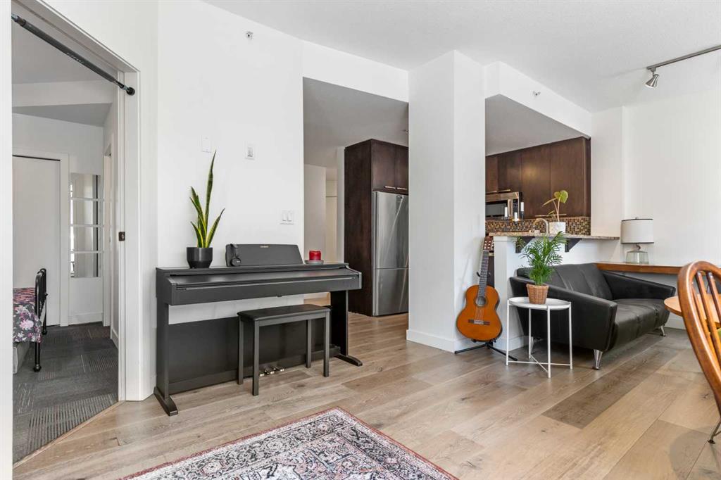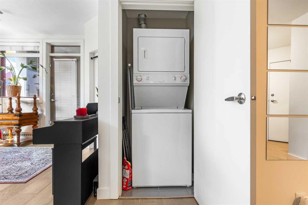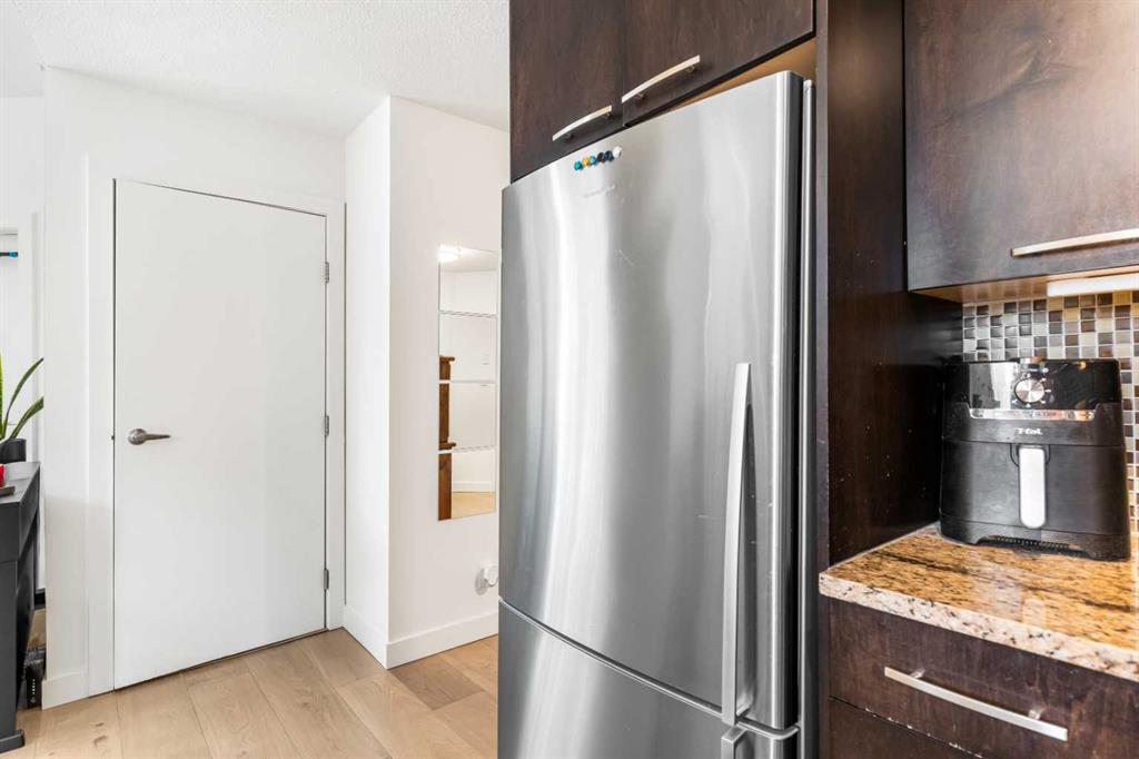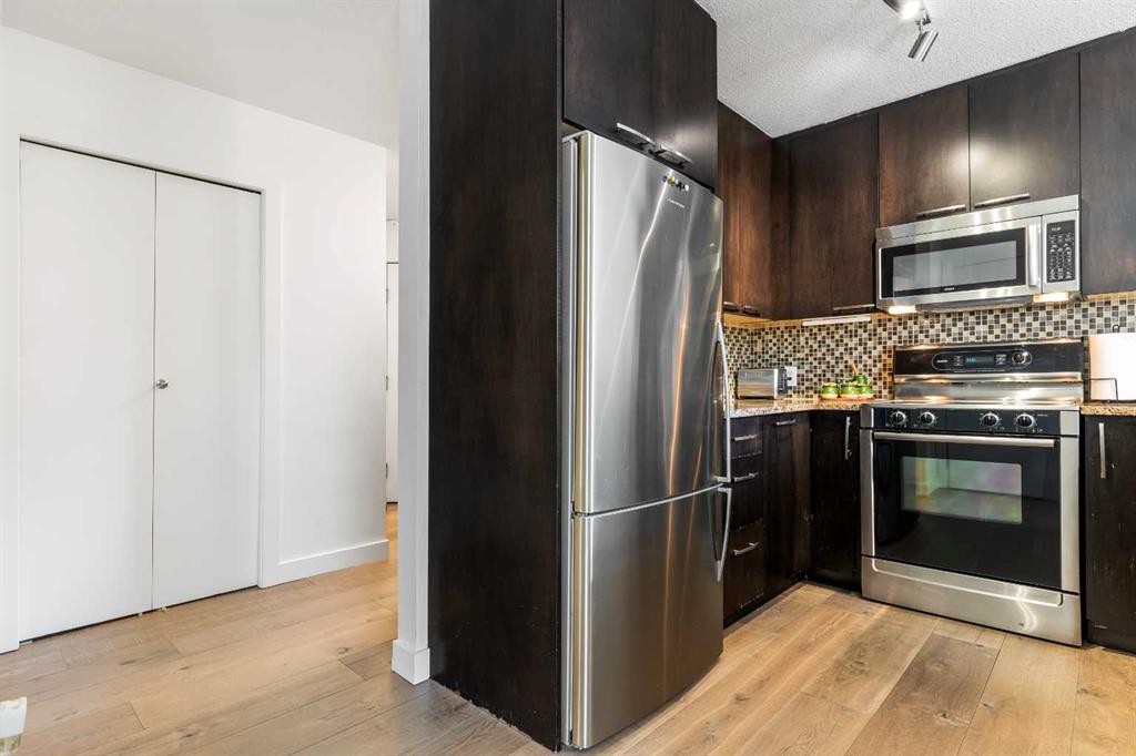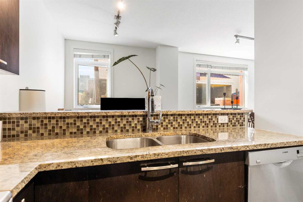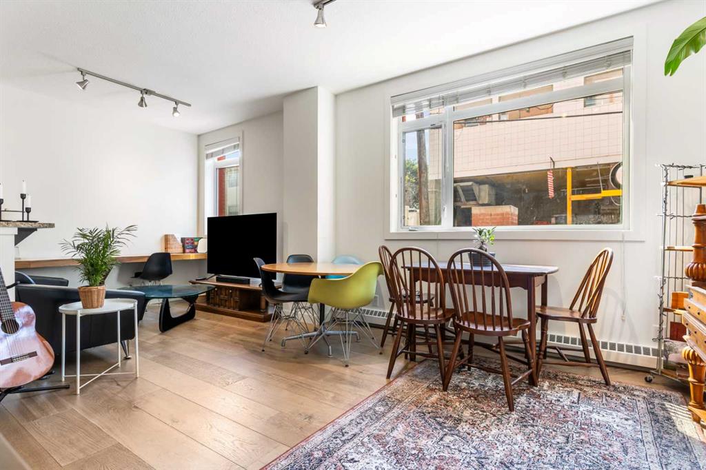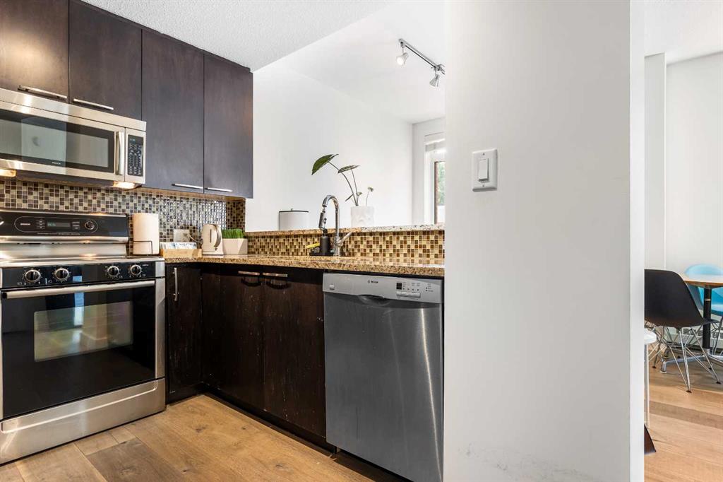 Discover the perfect blend of style, convenience, and investment potential in this chic condo located in the heart of Mission—a rare find in a concrete 6-storey building! Whether you're a first-time buyer looking for your dream home or an investor seeking a prime rental opportunity, this unit offers exceptional value in one of Calgary’s most vibrant communities. Step into a bright and spacious living area featuring hardwood floors and large south-facing windows that fill the space with natural light. The stylish kitchen is a chef’s delight, with granite countertops, a sleek tile backsplash, matching stainless steel appliances, and a convenient breakfast bar—ideal for casual dining or entertaining friends. The open-concept living and dining areas provide plenty of space for relaxing or hosting, and you’ll love stepping out onto the patio, perfect for outdoor gatherings or unwinding after a long day. The bedroom offers a generous full-width closet and direct access to a modern en-suite, complete with granite counters & a tiled shower. With in-suite laundry, a titled parking stall in the heated parkade, a storage locker, and access to a stunning rooftop patio with city views, this condo has everything you need for comfortable urban living. Plus, the building is meticulously maintained with exceptional management, ensuring your investment is well-protected. Located in the sought-after Mission neighborhood, you’ll be within walking distance of trendy restaurants, cozy cafes, parks, and transit, with easy access to major routes—making it a fantastic location for both living and renting. Don’t miss out on this incredible opportunity to own in one of Calgary’s best communities—whether you’re starting your homeownership journey or expanding your investment portfolio, this condo is a smart choice!
