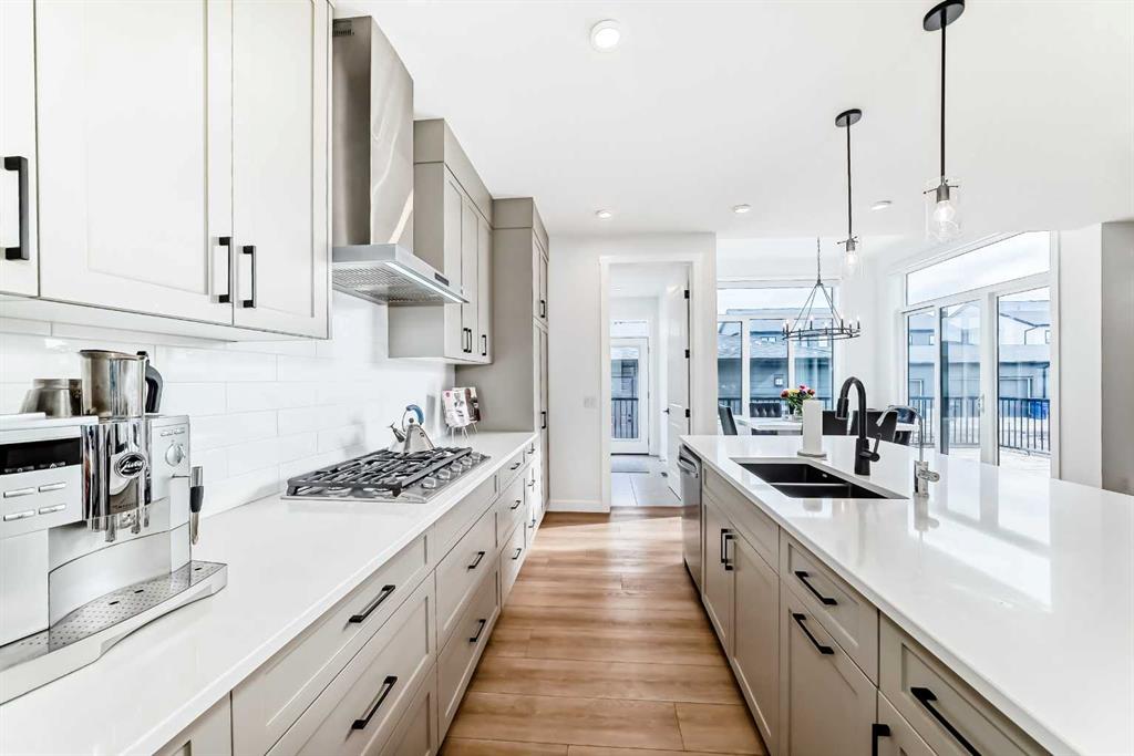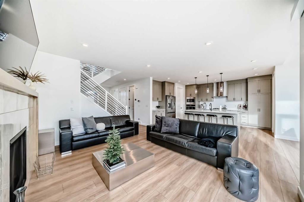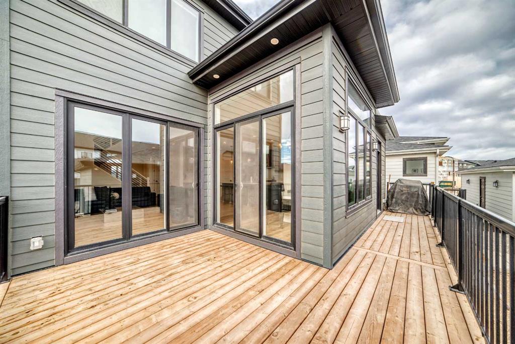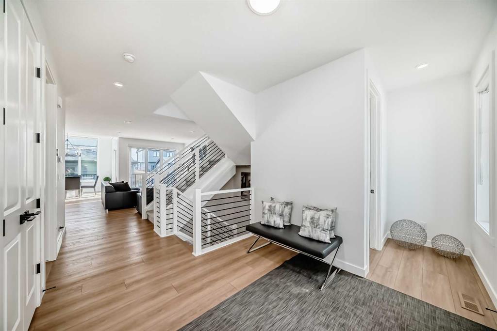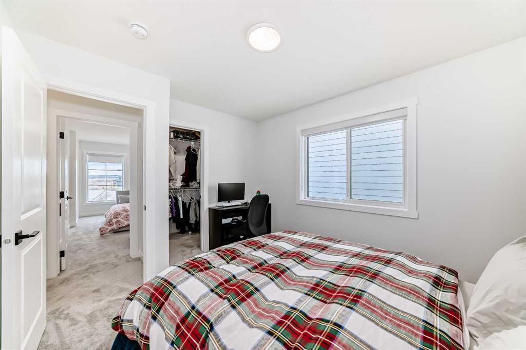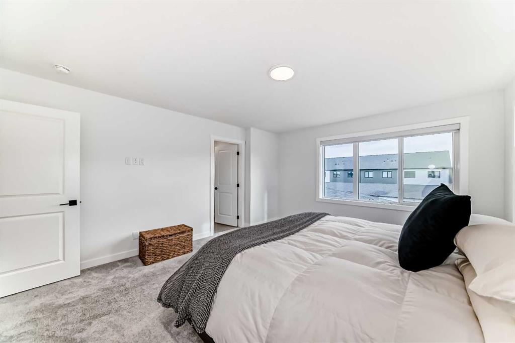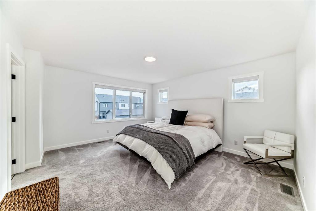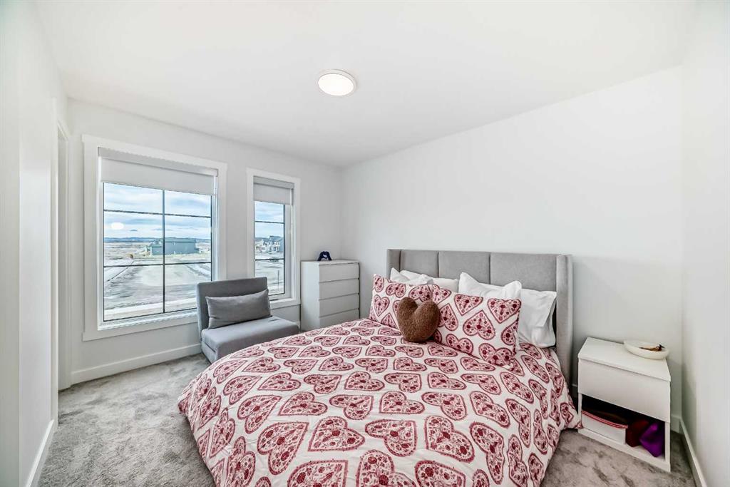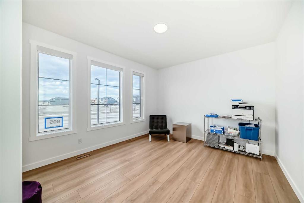 Upstairs, the thoughtful layout continues. The primary bedroom is a true retreat, featuring a luxurious five-piece ensuite with dual vanities, a freestanding tub, a separate shower, and a spacious walk-in closet. A comfortable upper-level family room creates the perfect space for movie nights or quiet downtime. Two additional well-sized bedrooms, each with their own walk-in closets, share a modern four-piece bathroom—ideal for families of all sizes.