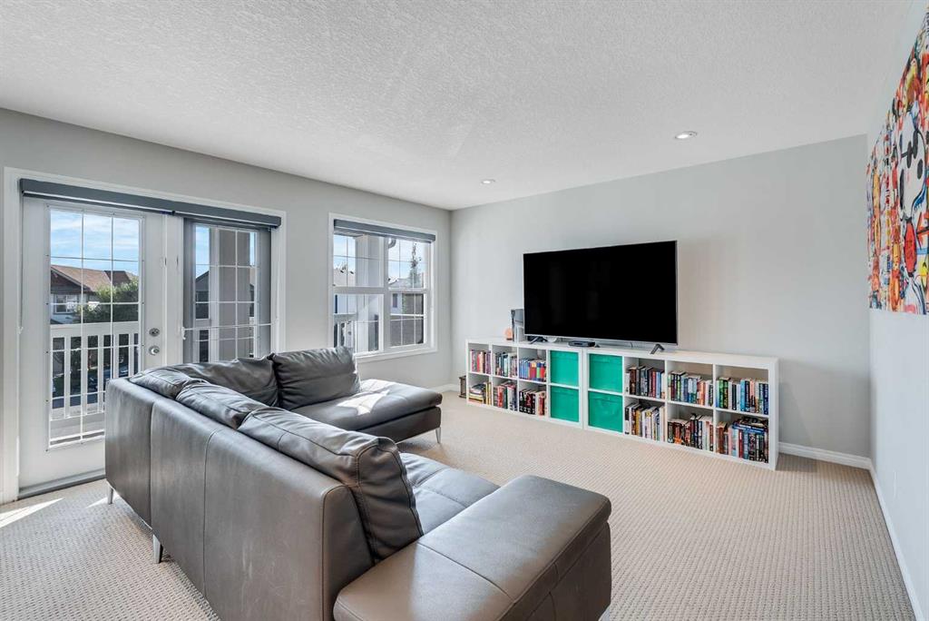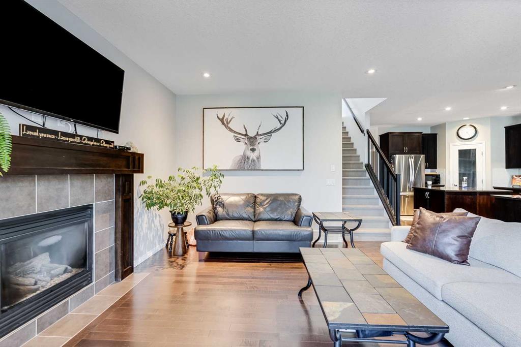 The open-concept main floor has 9-ft ceilings, hardwood and tile flooring, a private office with French doors, and a gourmet kitchen with extended height cabinetry, granite counters, stainless steel appliances, a large island, and a walk-in pantry. The dining area flows to a huge two-tier, partially covered deck. Ideal for entertaining! While the living room is anchored by an elegant gas fireplace and oversized windows.
