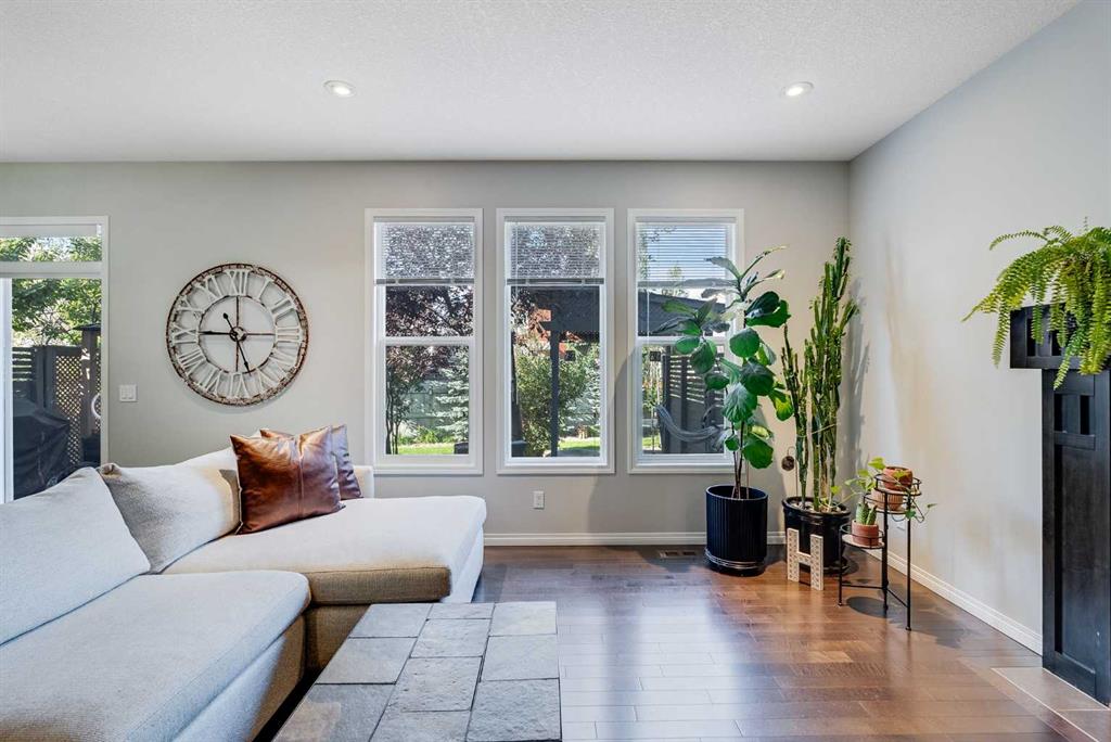 The pie-shaped backyard is a true retreat, with built-in garden beds on both sides, multiple fruit trees, and lush landscaping that creates a park-like setting. Located within walking distance to parks, ponds, schools, and shopping, with quick access to the ring road this home blends comfort, convenience, and style.