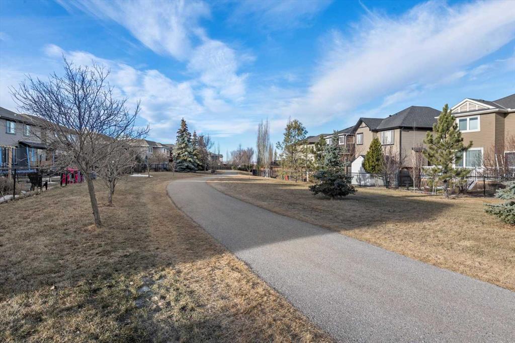 Lot:back yard, backs on to park/green space, landscaped, lawn, no neighbours behind, private, street lighting