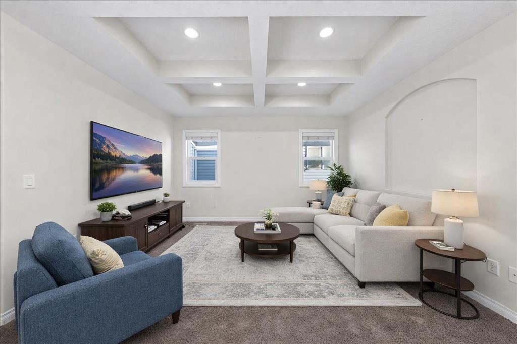 Upstairs, the spacious primary bedroom fits a full king set with room to spare. The oversized walk-in closet offers storage busy families actually need with room for both wardrobes (IYKYK). The ensuite... dual sinks, a deep corner jetted soaker tub under large windows, ample counter space and a separate walk in glass shower... need I say more. The bonus room features an upgraded coffered ceiling and large windows, plus two additional oversized bedrooms with walk-in closets in each room and a shared 4-piece bath.