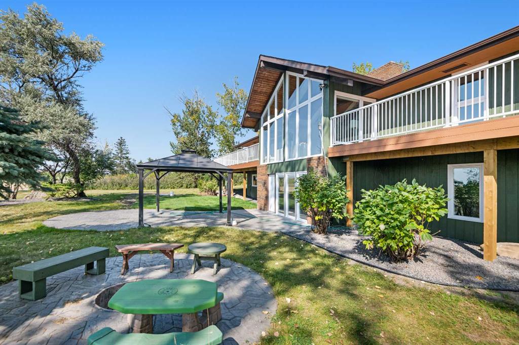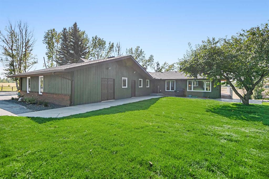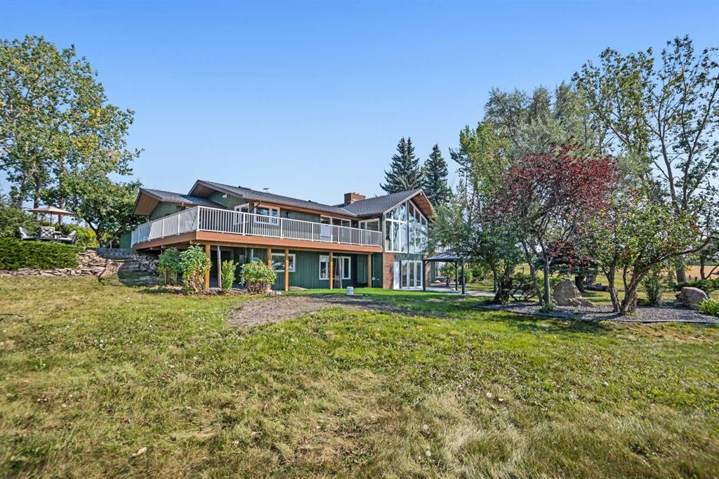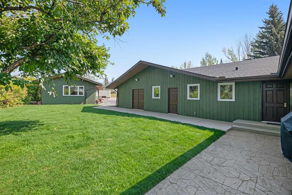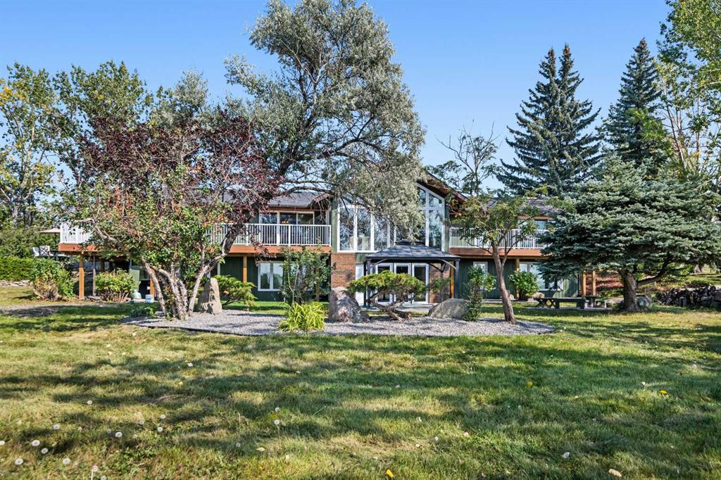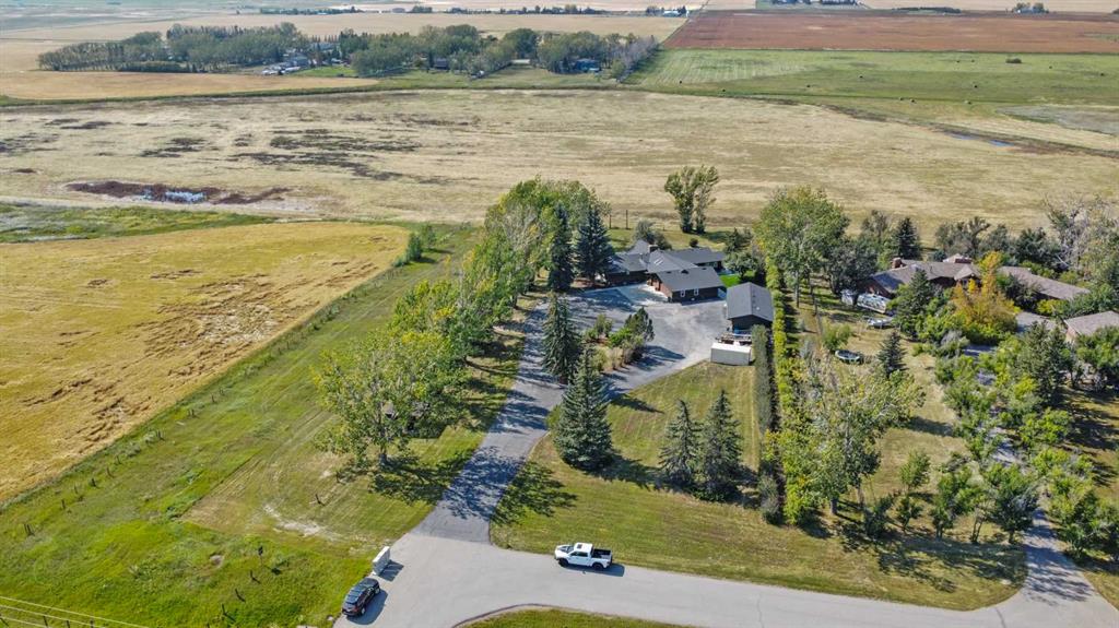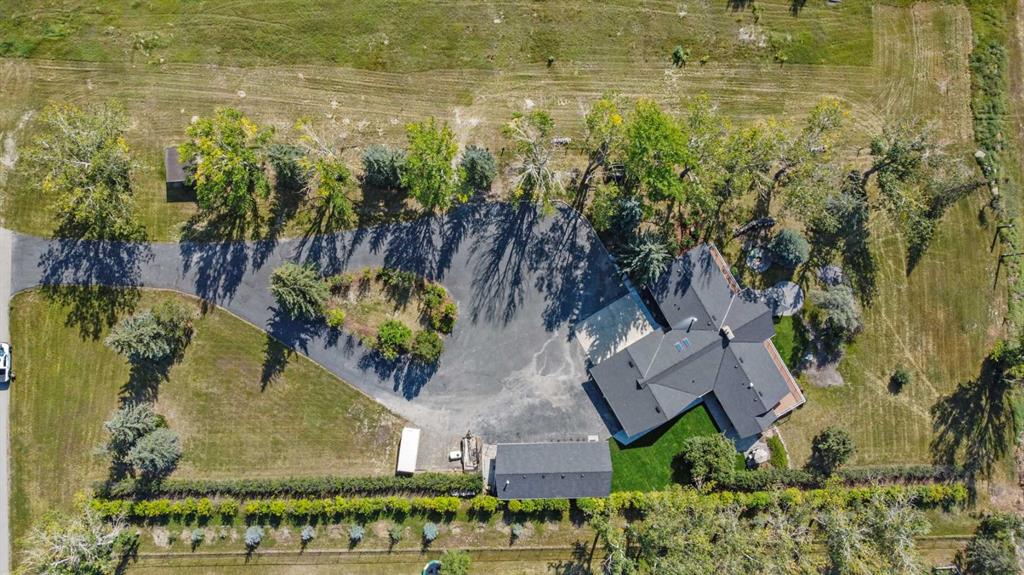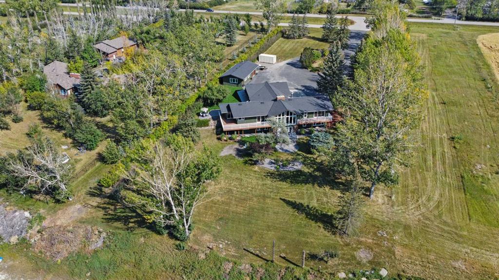 This is an exceptional home that we are proud to present that has outstanding quality product throughout which you can just relax and enjoy for many years to come! Located in Exclusive Georgian Estates on just over 2 acres and offers you so much privacy and incredible views, NE of Calgary off of Country Hills Blvd and under 4 km to Stoney Trail. This is a west backing walkout bungalow with a newly created 3 Bedroom basement suite with separate entry (illegal), or use for present or extended family. It has a triple attached garage, and also has a newly renovated separate shop/garage that has a new office and gym space, and could also be developed into a separate suite by connecting roughed in plumbing and adding a sewer line to the septic system, with a heated single garage and work bench. The bungalow main level has 3 bedrooms, 2 1/2 bathrooms, central living room with high beam vaulted ceiling that provides an incredible west facing view. The primary bedroom also has a separate sliding door to the deck. This leads into the dining room and then the updated kitchen with a modern flair and newer appliances, plus a sink with a great view! There is a casual family room off of the kitchen that could also be a casual eating area. Also a large laundry room, and several exits. The lower walkout level also has 3 bedrooms, bathroom, large kitchen and dining area, and also a large central living room with walkout access to the backyard. A newer stacker laundry unit is in the mechanical room, easy access. There is a large gazebo out back, and a huge yard area, nicely maintained. A long list of upgraded product includes: 2023: new 2,000 gallon septic tank, carpet. And in 2024: Triple Pane Windows; Asphalt Shingles, Full Width Deck installed from the footings up; Shop reno'd with a new furnace, an office and open area plus a single bay garage; Concrete Walkway and Front Entry; New Blinds; New Insulated Garage Doors; Exterior Lights; Tile; New Kitchen Downstairs; Appliances with 2 fridges, oven, 2 washer/dryers, 2 dishwashers, landscaping, carpet, interior and exterior painting, and driveway maintenance. In 2025: 2 new hot water tanks; reinforced eaves troughs and new downspouts. Lot's of storage in the basement and also a separate storage area in the attached garage. Two furnaces, one for each level. Parking? Definitely not a shortage here. A long paved driveway with a wide area for parking a lot of shiny vehicles. There is also a side RV parking area with a 220V plug in. There is a water co-op with an annual fee of $1600. The pictures are great but this really is a must see home. Come take a look!