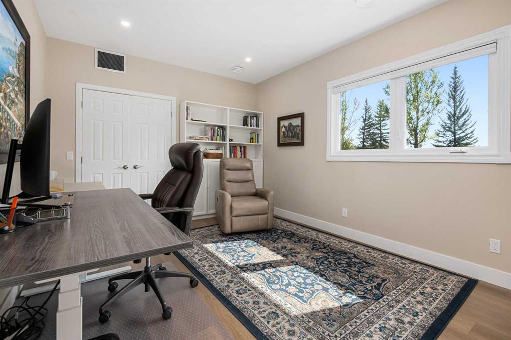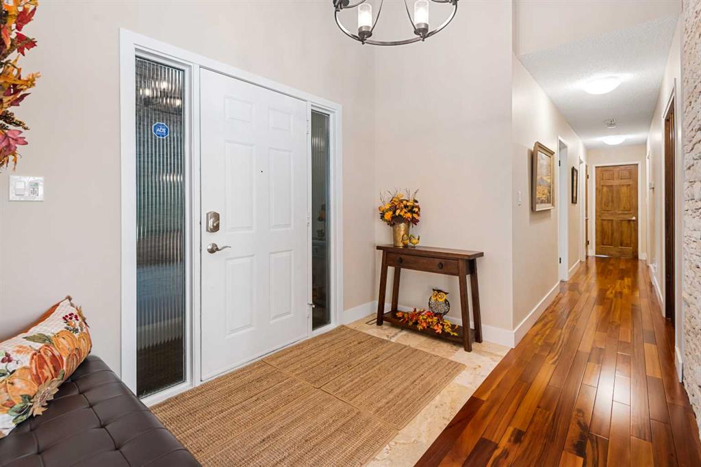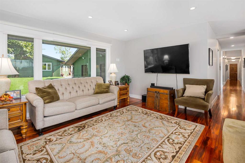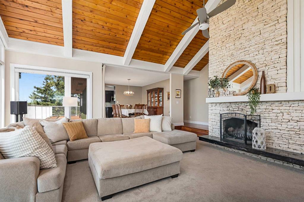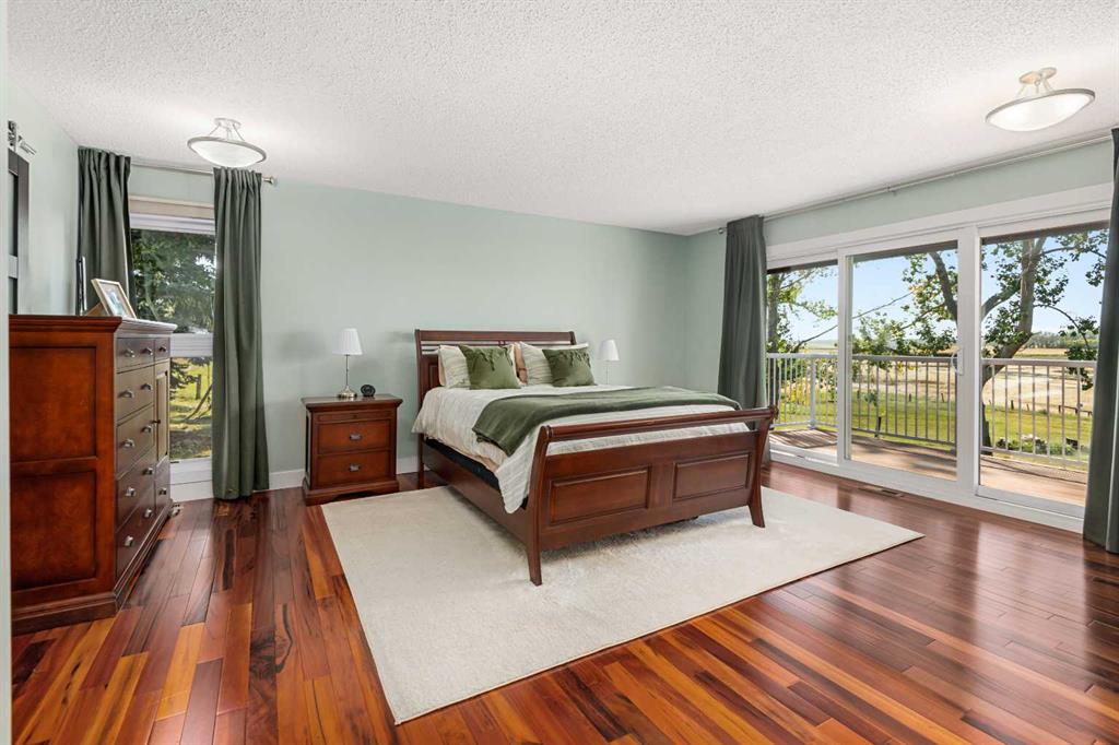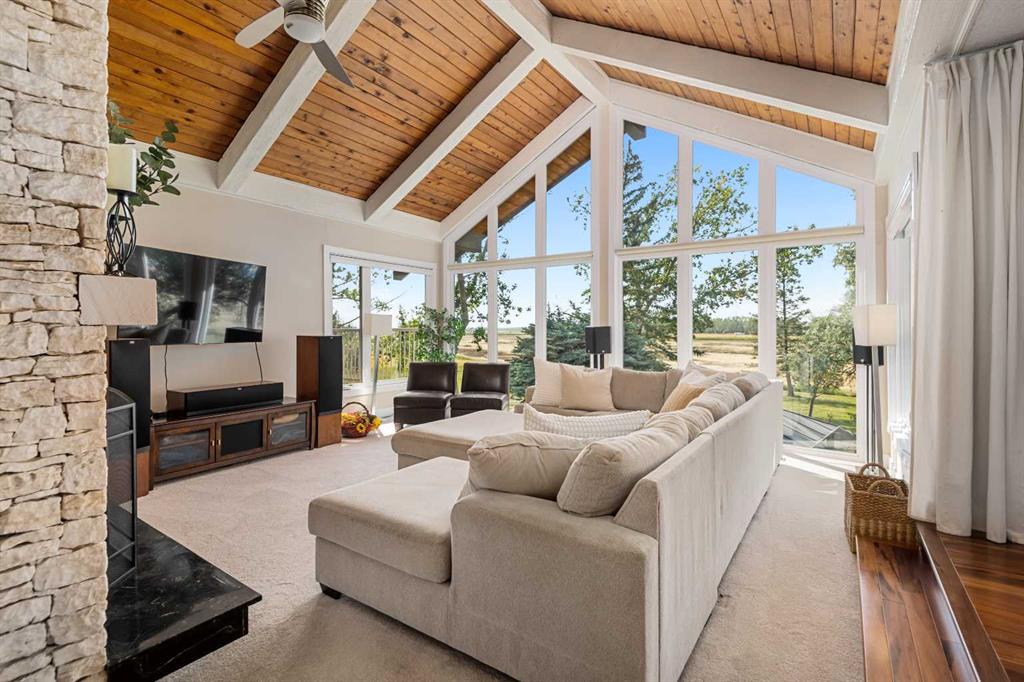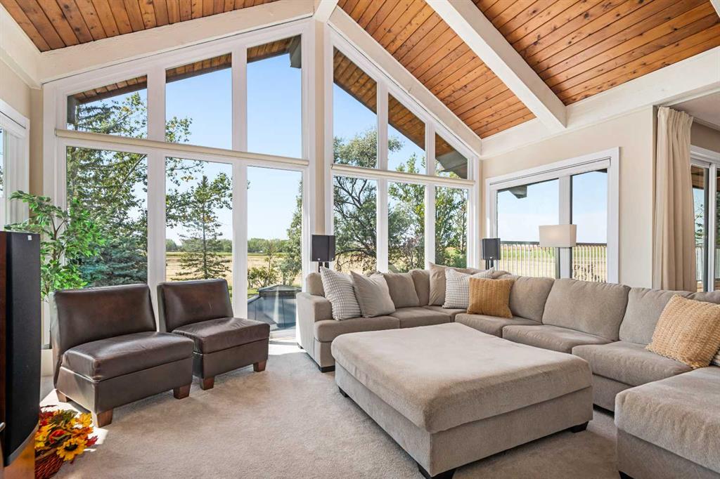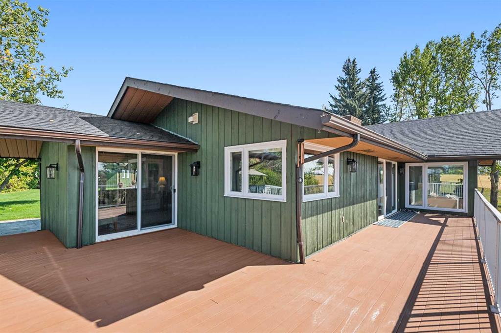 This is an exceptional home that we are proud to present that has outstanding quality product throughout which you can just relax and enjoy for many years to come! Located in Exclusive Georgian Estates on just over 2 acres and offers you so much privacy and incredible views, NE of Calgary off of Country Hills Blvd and under 4 km to Stoney Trail. This is a west backing walkout bungalow with a newly created 3 Bedroom basement suite with separate entry (illegal), or use for present or extended family. It has a triple attached garage, and also has a newly renovated separate shop/garage that has a new office and gym space, and could also be developed into a separate suite by connecting roughed in plumbing and adding a sewer line to the septic system, with a heated single garage and work bench. The bungalow main level has 3 bedrooms, 2 1/2 bathrooms, central living room with high beam vaulted ceiling that provides an incredible west facing view. The primary bedroom also has a separate sliding door to the deck. This leads into the dining room and then the updated kitchen with a modern flair and newer appliances, plus a sink with a great view! There is a casual family room off of the kitchen that could also be a casual eating area. Also a large laundry room, and several exits. The lower walkout level also has 3 bedrooms, bathroom, large kitchen and dining area, and also a large central living room with walkout access to the backyard. A newer stacker laundry unit is in the mechanical room, easy access. There is a large gazebo out back, and a huge yard area, nicely maintained. A long list of upgraded product includes: 2023: new 2,000 gallon septic tank, carpet. And in 2024: Triple Pane Windows; Asphalt Shingles, Full Width Deck installed from the footings up; Shop reno'd with a new furnace, an office and open area plus a single bay garage; Concrete Walkway and Front Entry; New Blinds; New Insulated Garage Doors; Exterior Lights; Tile; New Kitchen Downstairs; Appliances with 2 fridges, oven, 2 washer/dryers, 2 dishwashers, landscaping, carpet, interior and exterior painting, and driveway maintenance. In 2025: 2 new hot water tanks; reinforced eaves troughs and new downspouts. Lot's of storage in the basement and also a separate storage area in the attached garage. Two furnaces, one for each level. Parking? Definitely not a shortage here. A long paved driveway with a wide area for parking a lot of shiny vehicles. There is also a side RV parking area with a 220V plug in. There is a water co-op with an annual fee of $1600. The pictures are great but this really is a must see home. Come take a look!
