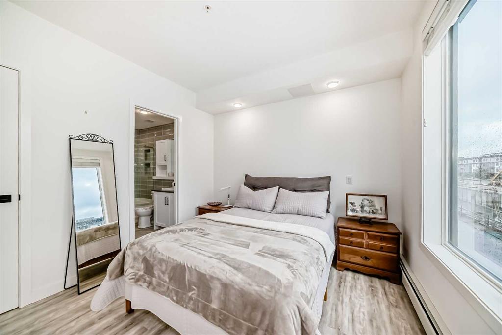 Welcome to this stylish and beautiful 2-bedroom, 2-bathroom condo in the sought after NW community of University District! This modern condo has been thoughtfully designed with an open-concept layout featuring premium vinyl plank flooring throughout, creating a seamless flow between living spaces. The primary bedroom is generously sized and features a 3-piece ensuite with larger shower and a walk-in closet. A second bedroom is situated on the other side of the unit which can also be used as an office and has a four-piece bathroom across from it. The functional kitchen boasts stainless steel appliances, gas stove, full-height white cabinetry, quartz countertops and a built-in pantry providing lots of storage. The living room opens up to the dining room with a large balcony extending the indoor space for entertaining guests. This desirable corner unit condo allows lots of natural light to flow through it showcasing large windows in almost every room. The in-suite laundry with extra room for storage provides added convenience. The August building offers an impressive array of amenities including a roof-top deck, party room and lounge as well as a car wash in the secure underground area. This unit also comes with a titled underground parking spot and an oversized storage unit, providing exceptional value to this home. This pet-friendly building is also located in one of the most desirable locations in NW Calgary -- steps away from all the amenities one could desire, including Save-On-Foods, Shoppers Drug Mart, Cineplex Theatre, Market Mall and an array of restaurants and coffee shops. This location is ideal for professionals working nearby or studying at the University of Calgary, empty-nesters, investors or anyone seeking a modern, urban lifestyle with easy access to major routes and transportation hubs. Book your private viewing now before this spectacular condo is sold!