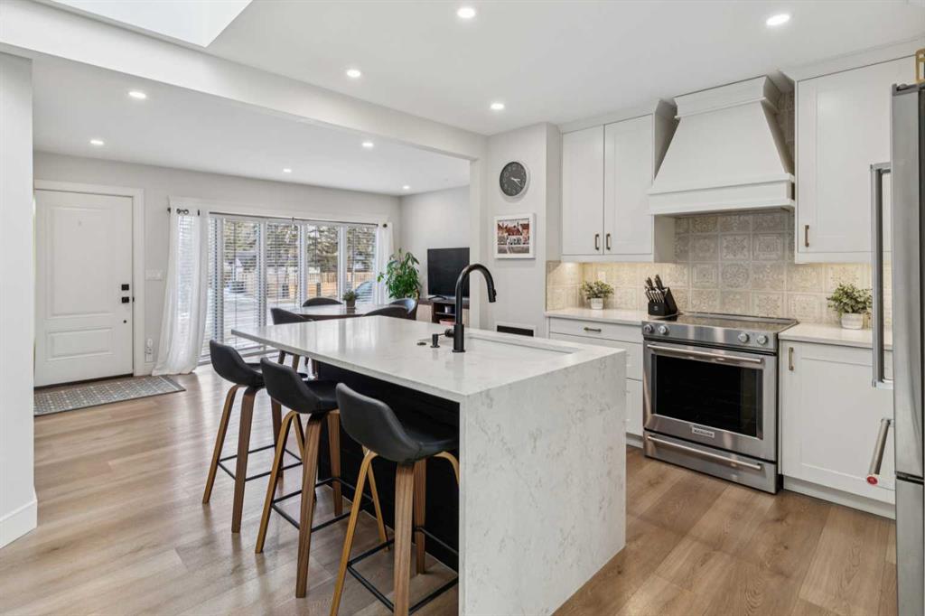 Perfectly situated at 412 Athlone Rd SE, this bungalow has been transformed through a comprehensive "to the studs" renovation where every detail was crafted from the ground up. From the moment you arrive, the striking Hardie board exterior and professional landscaping hint at the quality within. Inside, the layout is defined by a seamless flow and an abundance of natural light, anchored by luxury vinyl plank flooring with premium cork soundproofing that runs throughout the main level. The heart of the home is a chef-inspired kitchen that balances high-end function with show-stopping style. A massive quartz waterfall island serves as the social hub, complemented by an Italian ceramic backsplash, a custom range hood, and a suite of professional KitchenAid appliances. A bright skylight overhead ensures the space feels airy and open, while the adjacent sunroom—featuring a Pacific Energy wood-burning stove—offers a cozy sanctuary for any season. The primary suite is a true retreat, offering custom built-ins and a spa-inspired ensuite that rivals a luxury hotel. Indulge in the standalone deep soaker tub or the curbless glass-enclosed rain shower, all set against a backdrop of heated Italian ceramic floors and designer Delta fixtures. This level is thoughtfully designed for versatility, featuring an additional well-appointed bedroom and a refined 4-piece main bathroom, also elegantly finished with Italian ceramic tile and heated floors. The living space extends into the fully developed basement, where you will find two more generous bedrooms and a protected Dricore subfloor system for year-round warmth. This level also hosts a large, dedicated laundry room equipped with ample storage and high-efficiency Electrolux appliances. Beyond the aesthetic, the home’s infrastructure has been completely modernized with R60