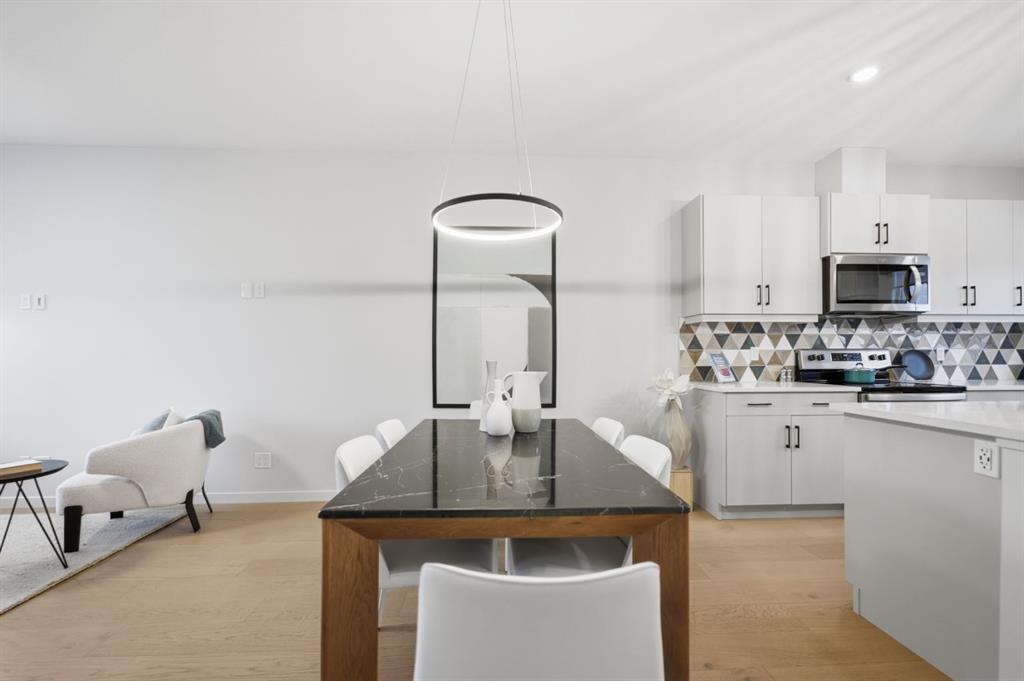 OPEN HOUSE SAT & SUN 1-3PM Welcome to this immaculate TRICO FORMER SHOW HOME in the highly desirable Wolf Willow community! This pristine 3-bedroom, 2.5-bathroom home has never been lived in , Boasting over $45,000 in builder upgrades with tasteful, high-end finishes throughout, this home features air conditioning for year-round comfort, professionally landscaped yard with mature plantings, and a beautiful deck perfect for entertaining. Every room showcases thoughtfully designed accent walls adding character and style, while a convenient office desk nook on the second-floor hallway maximizes every inch of space. Ideally situated steps away from the dog park, this home is perfect for pet owners and families alike. Wolf Willow has long been cherished for its natural beauty, diverse fish and wildlife, and abundant recreational opportunities. With its contemporary design, numerous amenities, and strong connection to the river, Wolf Willow brings the lifestyle and beauty of the Bow River Valley right to your doorstep. This is a rare opportunity to own a designer showhome.