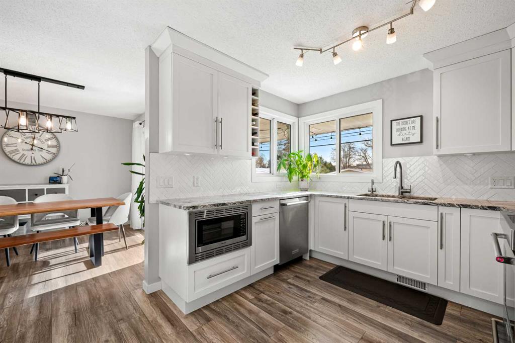 Welcome to 304 Wascana Crescent — a beautifully updated bungalow on a quiet crescent in the heart of Willow Park. In one of Calgary’s most sought-after communities, this home offers the perfect blend of modern updates and future potential. Upon entering you’ll notice the renovated main floor featuring a bright, open living space with updated flooring, fresh neutral tones, and a modernized brick fireplace. The fully renovated kitchen (2019) showcases crisp white cabinetry, granite countertops, stainless steel appliances, a stylish backsplash, and a spacious island with seating — perfect for entertaining or everyday living.