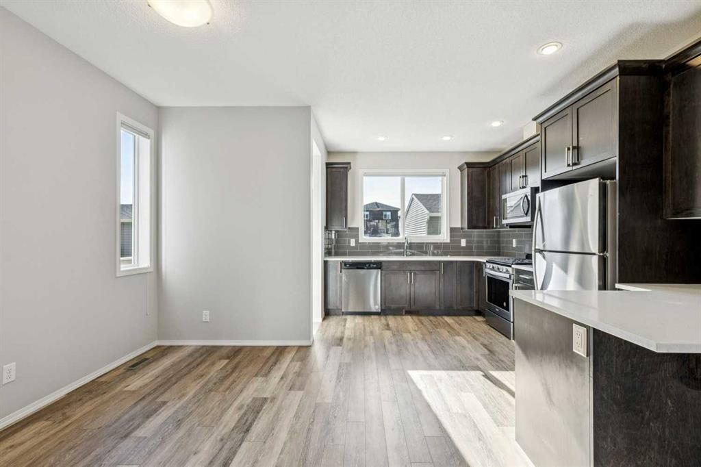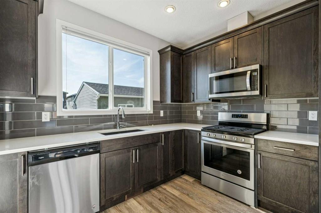 Outstanding, beautifully maintained, one owner, Morrison built 1/2 duplex with legal suite! This 1,576 sq ft home features a large living room with adjoining dining area, kitchen with eating nook and access to the spacious 11'x10' deck and private yard. The upper level boasts a tech area for your computer, 2 bedrooms with walk-in closets, 4 pc bathroom, a primary bedroom with a walk-in closet and 4 pc ensuite plus there is the convenient upper level laundry. The 650 sqft lower level suite has a living/dining area, bedroom, 4 pc bath and laundry - great for extended family or tenants. Two separate furnaces. New IKO shingles in 2025. Off-street parking pad with alley access, opportunity to build a double garage. Close to transit and K-9 school, easy access to Stoney Trail. Vacant - immediate possession available. Live up and rent down!
