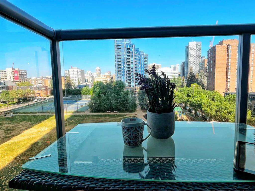 Experience vibrant inner-city living in this beautifully renovated 1 bedroom, 1 bathroom residence in Union Square, perfectly situated in Calgary’s sought-after Beltline. Offering a seamless blend of modern comfort and urban convenience, this west-facing unit showcases stunning park views and an unbeatable location backing directly onto Haultain Park—one of the few downtown residences to offer immediate access to green space and tennis courts. Recently refreshed with thoughtful upgrades throughout, the home features upgraded flooring, fresh contemporary paint, and stylish new lighting fixtures that create a bright and inviting atmosphere. The well-appointed kitchen is both functional and elegant, complete with sleek granite countertops, a spacious island, upgraded faucets, and a brand-new dishwasher—ideal for everyday living or entertaining guests. The open-concept layout flows effortlessly into the living area, where large windows fill the space with natural light and frame serene views of the park beyond. Designed with today’s lifestyle in mind, this unit includes a custom built-in workspace, perfect for working from home or staying organized. The bedroom offers comfort and practicality with upgraded closet doors and ample storage, while the bathroom has been enhanced with new faucets and updated fixtures, providing a clean, modern feel. Enjoy the convenience of in-suite laundry, adding ease to your daily routine. Step outside to your private balcony, finished with durable composite deck tiles, creating a welcoming outdoor retreat to relax and enjoy the west-facing exposure and peaceful surroundings. This exceptional offering also includes one titled underground parking stall and an assigned storage locker, ensuring secure parking and additional space for your belongings. Union Square is known for its contemporary design and unbeatable location above First Street Market, placing some of Calgary’s best dining, coffee shops, boutiques, and pubs right at your doorstep. Located on vibrant 1st Street SW, you’ll enjoy the energy of city living while still having direct access to green space just steps away. Whether you’re a professional, investor, or first-time buyer, this move-in-ready home delivers the perfect balance of style, comfort, and location in one of Calgary’s most dynamic communities. Don’t miss your opportunity to live in a beautifully updated unit with park-side living in the heart of the Beltline.