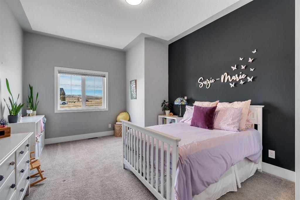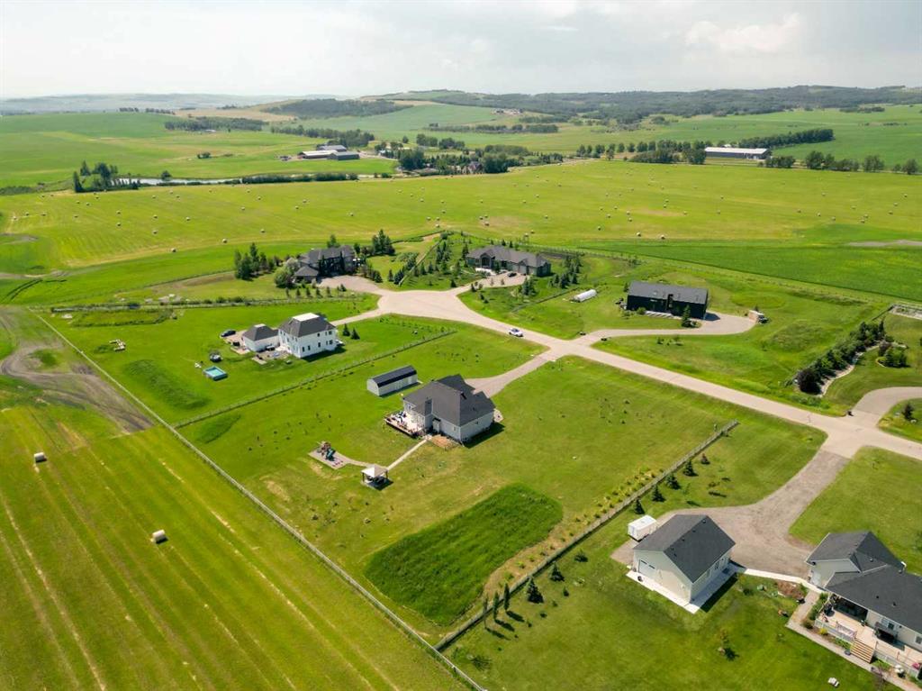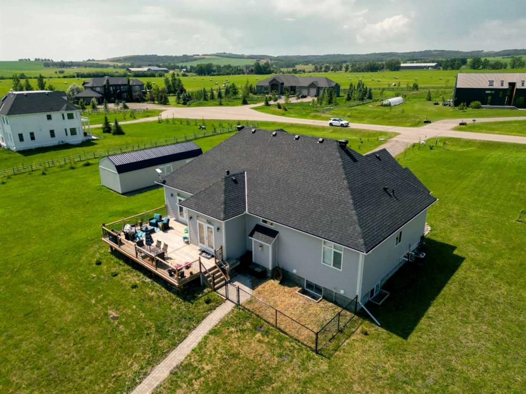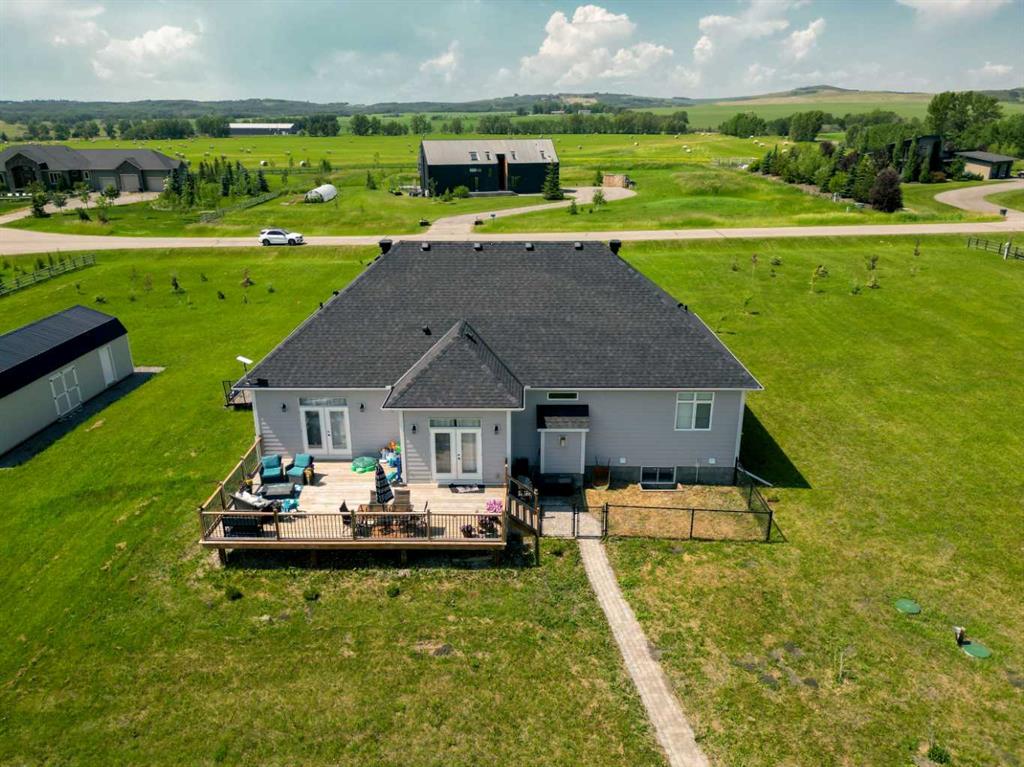 Set within the exclusive cul-de-sac of Fraser Ranch Estates, this custom Frontier Homes build offers over 3,900 sq ft of developed space on 2 acres with unobstructed views of the rural foothills. Meticulously maintained and presenting like new, this property blends refined design with everyday functionality while delivering the privacy and space that define acreage living. Soaring 10’ ceilings and modern finishes elevate the open-concept main floor, where natural light pours through oversized windows and creates a bright, welcoming atmosphere. Entertaining feels effortless in the impressive dining space with grand 12’ ceilings and expansive windows, offering flexibility as an elegant gathering room or airy open den. Relaxation comes naturally in the adjacent living area, anchored by a gas fireplace flanked by built-ins for architectural balance and cozy evenings at home. Culinary creativity is inspired in the beautifully appointed kitchen featuring granite countertops, timeless subway tile, stainless steel appliances, a walk-in pantry for extra storage and a large centre island designed for casual meals and conversation. Seamless access from the breakfast nook to the expansive back deck encourages an indoor-outdoor lifestyle with beautiful foothills views as your backdrop. All 3 main level bedrooms are intentionally arranged, with the primary retreat set apart from the other 2 bedrooms for enhanced quiet and separation. Peaceful mornings begin with private deck access, while a custom walk-in closet and indulgent 5-piece ensuite with dual sinks, deep soaker tub and oversized shower create a true owner’s oasis. The fully finished lower level expands the home’s versatility with a massive rec space easily accommodating media, home gym, play area, hobbies and more, plus 2 additional bedrooms and a stylish 3-piece bathroom. The oversized garage with 2 doors and a long driveway provides generous room for RV and recreational storage, while the massive shed keeps seasonal equipment organized. Mountain views and warm afternoon sun are captured from the west-facing front patio, and the huge back deck is ideal for summer barbecues and evenings spent unwinding while taking in endless foothills scenery. Your landscaping stays protected with the fenced dog run, and expansive grassy areas offer plenty of space for kids to play. Outdoor gatherings feel effortless in the dedicated gazebo area. Located just minutes from De Winton with convenient access to Okotoks, Heritage Pointe and Calgary, this exceptional acreage offers peaceful rural living without compromising daily convenience.
