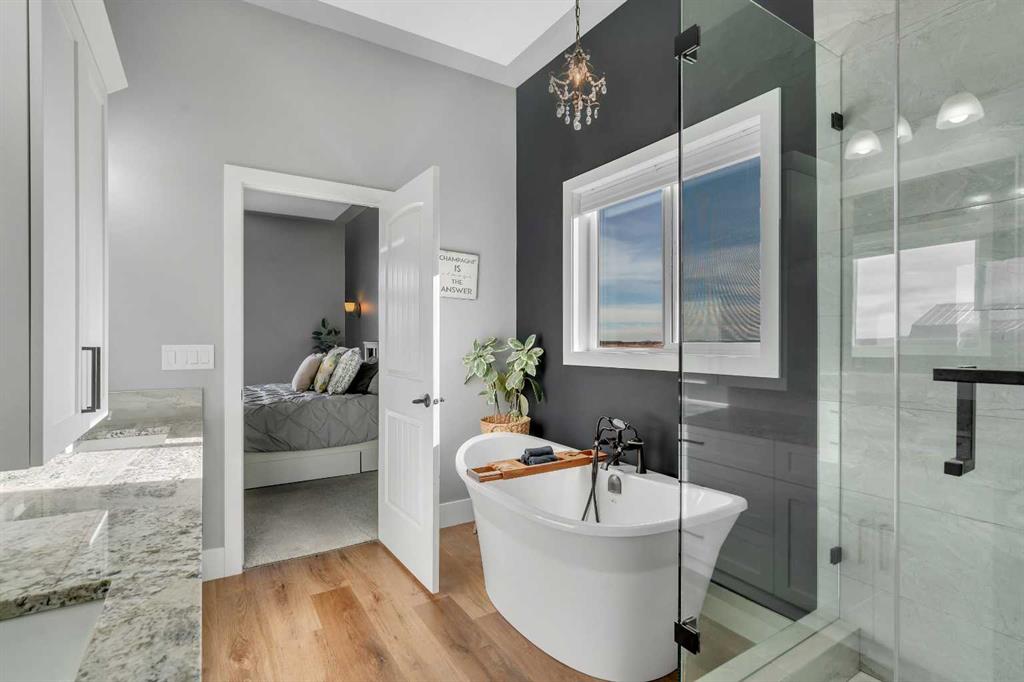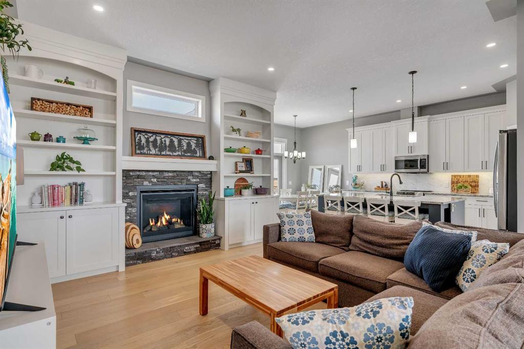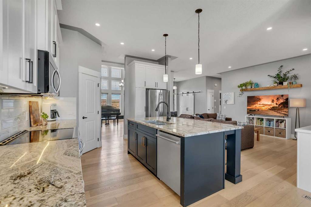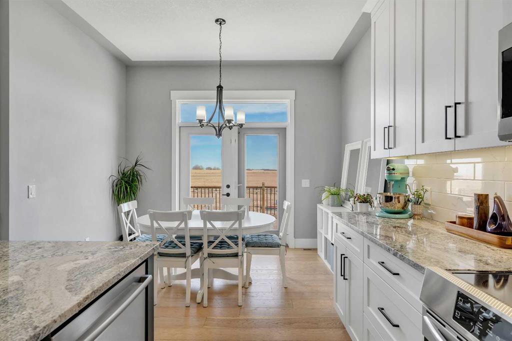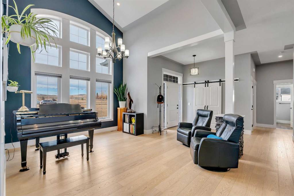 Set within the exclusive cul-de-sac of Fraser Ranch Estates, this custom Frontier Homes build offers over 3,900 sq ft of developed space on 2 acres with unobstructed views of the rural foothills. Meticulously maintained and presenting like new, this property blends refined design with everyday functionality while delivering the privacy and space that define acreage living. Soaring 10’ ceilings and modern finishes elevate the open-concept main floor, where natural light pours through oversized windows and creates a bright, welcoming atmosphere. Entertaining feels effortless in the impressive dining space with grand 12’ ceilings and expansive windows, offering flexibility as an elegant gathering room or airy open den. Relaxation comes naturally in the adjacent living area, anchored by a gas fireplace flanked by built-ins for architectural balance and cozy evenings at home. Culinary creativity is inspired in the beautifully appointed kitchen featuring granite countertops, timeless subway tile, stainless steel appliances, a walk-in pantry for extra storage and a large centre island designed for casual meals and conversation. Seamless access from the breakfast nook to the expansive back deck encourages an indoor-outdoor lifestyle with beautiful foothills views as your backdrop. All 3 main level bedrooms are intentionally arranged, with the primary retreat set apart from the other 2 bedrooms for enhanced quiet and separation. Peaceful mornings begin with private deck access, while a custom walk-in closet and indulgent 5-piece ensuite with dual sinks, deep soaker tub and oversized shower create a true owner’s oasis. The fully finished lower level expands the home’s versatility with a massive rec space easily accommodating media, home gym, play area, hobbies and more, plus 2 additional bedrooms and a stylish 3-piece bathroom. The oversized garage with 2 doors and a long driveway provides generous room for RV and recreational storage, while the massive shed keeps seasonal equipment organized. Mountain views and warm afternoon sun are captured from the west-facing front patio, and the huge back deck is ideal for summer barbecues and evenings spent unwinding while taking in endless foothills scenery. Your landscaping stays protected with the fenced dog run, and expansive grassy areas offer plenty of space for kids to play. Outdoor gatherings feel effortless in the dedicated gazebo area. Located just minutes from De Winton with convenient access to Okotoks, Heritage Pointe and Calgary, this exceptional acreage offers peaceful rural living without compromising daily convenience.