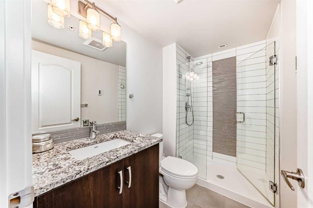 The spacious primary bedroom includes a private ensuite, while the second bedroom and full bath provide flexibility for guests, a home office, or roommates.
