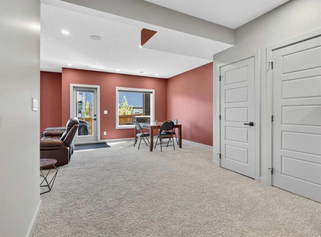 Inclusions:75 inch smart tv in rec room, 55 inch smart tv in living room, surround sound built in speakers in lower level, cabinet in garage