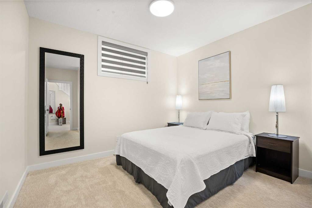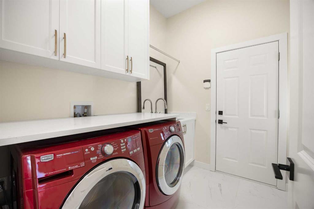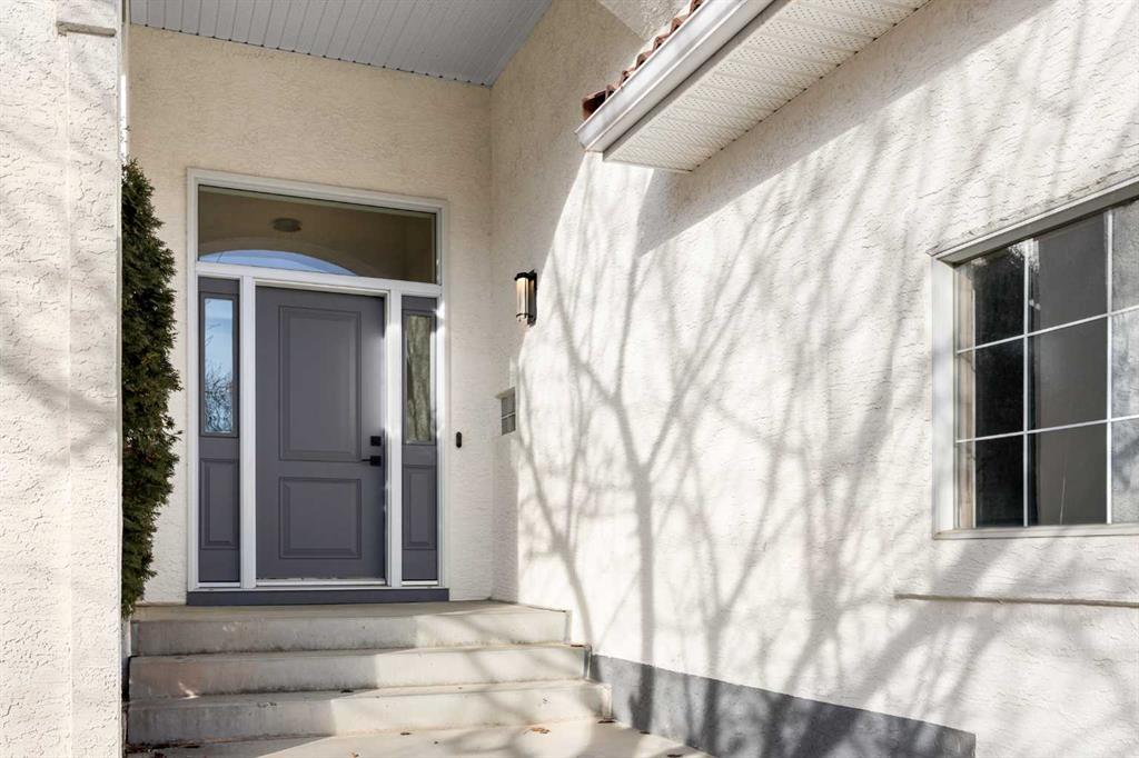 The main-floor Primary retreat offers a walk-in closet and a spa-inspired ensuite featuring a skylight, granite double vanity, free-standing soaker tub, and tiled shower. A second bedroom and full bathroom with tiled shower complete the main floor. The 9’ ceiling walk-out basement is beautifully finished with three additional bedrooms, two full bathrooms, and a large Recreation room with a wet bar. One bedroom functions as a second primary-style suite, complete with a walk-in closet and ensuite with double vanity and tiled shower, ideal for extended family or guests. Additional highlights include central air conditioning, two furnaces (new in 2024), two hot water tanks, PEX plumbing, NO Poly B, clay tile roof, built-in ceiling speakers, custom blinds, NEST thermostats, and a main-floor laundry room. Walking distance to the golf course, schools, and transit, and minutes to shopping, LRT, and major routes—this exceptional home delivers the complete Hamptons lifestyle.