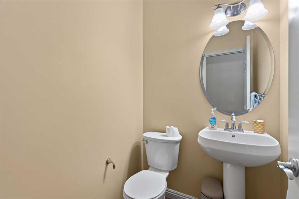 Upstairs, you’ll find a generous bonus room with vaulted ceilings and elegant maple railings—perfect as a family room or media space. Three well-sized bedrooms provide plenty of room for the whole family. The primary suite is a true retreat, offering a walk-in closet and a luxurious ensuite with a soaker tub and separate shower.