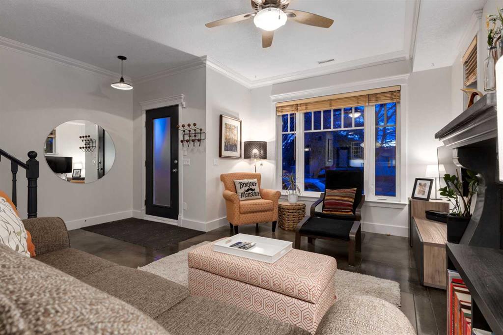 A rare blend of character and modern sophistication, this walk-up two-story brick townhouse brings New York style to the heart of Killarney. The open-concept main floor showcases polished concrete floors, 9-foot ceilings, crown mouldings, and a striking custom fireplace. An updated kitchen anchors the space with a large island, pantry, soft-close cabinetry, and designer fixtures. Upstairs, the primary suite is a true retreat with vaulted ceilings, hardwood floors, oversized windows, and a spa-inspired ensuite featuring a freestanding tub, walk-in shower, and heated floors. A second bedroom and upper-level laundry add everyday convenience. Enjoy a trellised patio, private fenced yard (rare find and perfect for pets), generous storage, oversized single garage, and guest parking. Built by Georgian Bay, this home offers quality construction in a prime inner-city setting. Walk to cafés, bakeries, parks, recreation, the C-Train, and the energy of 17th Avenue. Downtown access is quick and easy—urban living at its best.