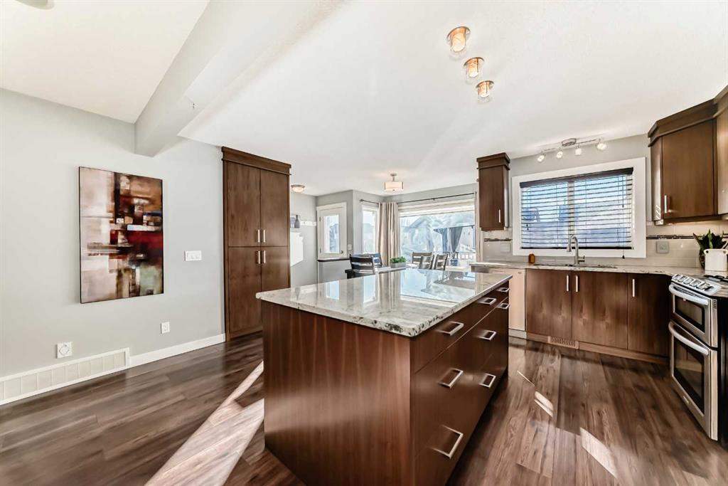 Hello Gorgeous, Welcome to a rare treasure in Coventry Hills! Tucked away on a quiet street, this fully renovated home is an absolute must-see. Step in from the large covered front porch to a spacious entry and an open-concept main floor featuring a stunning custom walnut kitchen—complete with granite countertops, upgraded appliances, pantry pullouts, and island garbage pullouts—not the calibre of kitchen typically found at this price point. The bright dining area is filled with natural light from oversized windows.Upstairs offers a spacious primary retreat with built-in closet, a beautifully remodeled main bath, convenient upper laundry with storage, and two additional bedrooms. The renovated main-floor half bath leads to a fully developed basement with plush carpet, a large media room with in-ceiling surround sound, built-in desk, and ample storage. Enjoy the cedar deck with gas BBQ hookup, ambient lighting, and downtown views. The insulated garage boasts 10’ ceilings, custom cabinetry, 60A 220V service, and a Reznor heater. With A/C, RV parking, central vac, under-deck storage, and unbeatable proximity to schools, parks, and shopping—this home truly has it all.