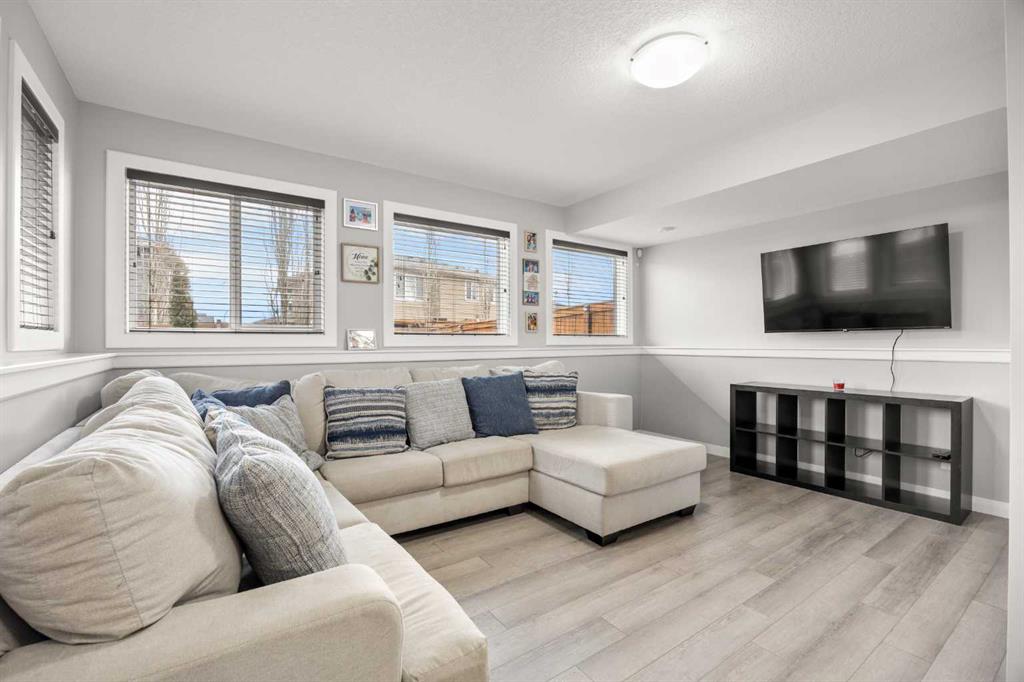 Step outside to your private SE-facing backyard oasis, featuring the massive stamped concrete pad backyard, a fire pit and the covered deck equipped with a TV that is included—plus a built-in gas line for your BBQ—creating the ultimate setting for year-round gatherings. Nestled in a quiet cul-de-sac close to schools, parks, green spaces, and all essential amenities, this home delivers the perfect blend of luxury, functionality, and space.