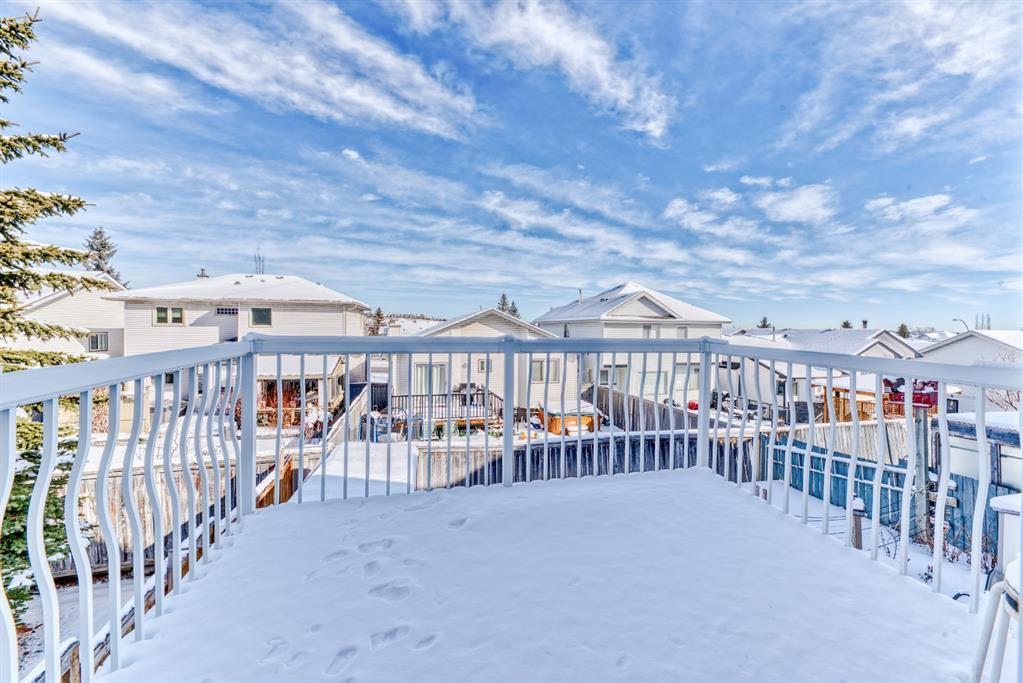 Bright, open main floor featuring vaulted ceilings, large windows, oak hardwood flooring, ceramic tile throughout high traffic areas, and a flexible open space ideal for dining, office, or recreation. The well appointed kitchen offers granite countertops, upgraded oak cabinetry, ceramic backsplash, crown mouldings, stainless steel appliances, reverse osmosis water system, and a built in microwave hood fan vented outside. The adjoining breakfast nook and living room are centered around a beautiful gas fireplace and open onto a northeast facing balcony overlooking the private, tree sheltered backyard.