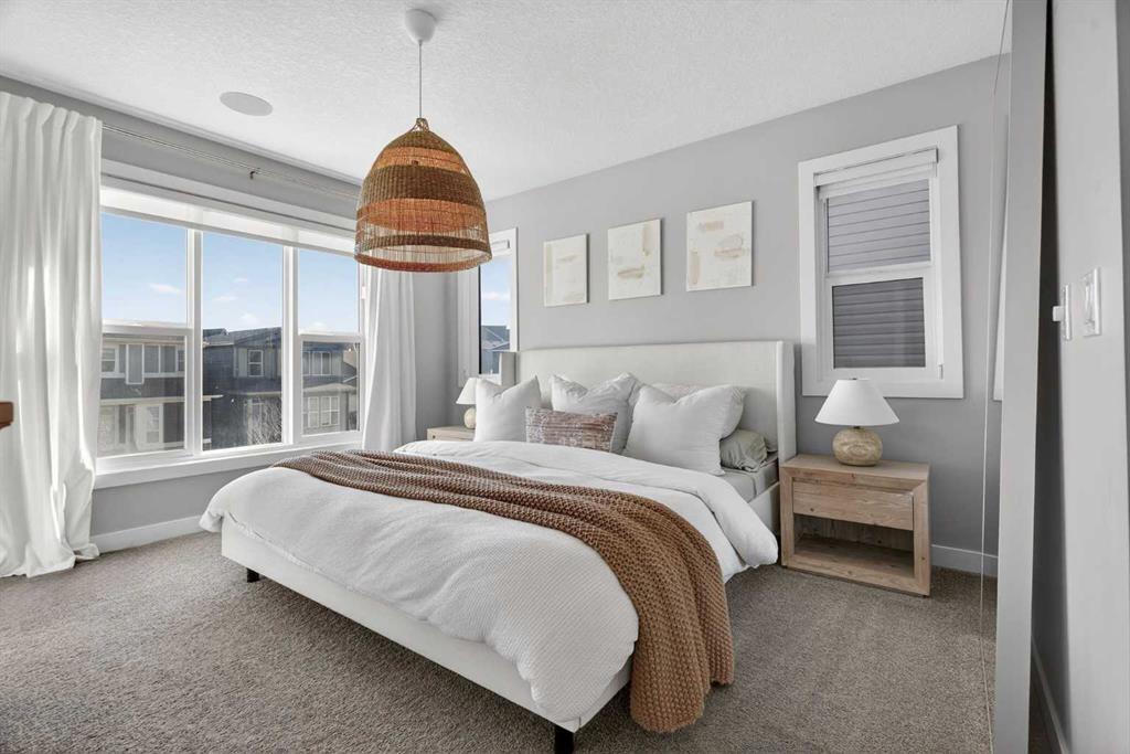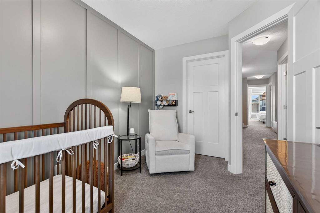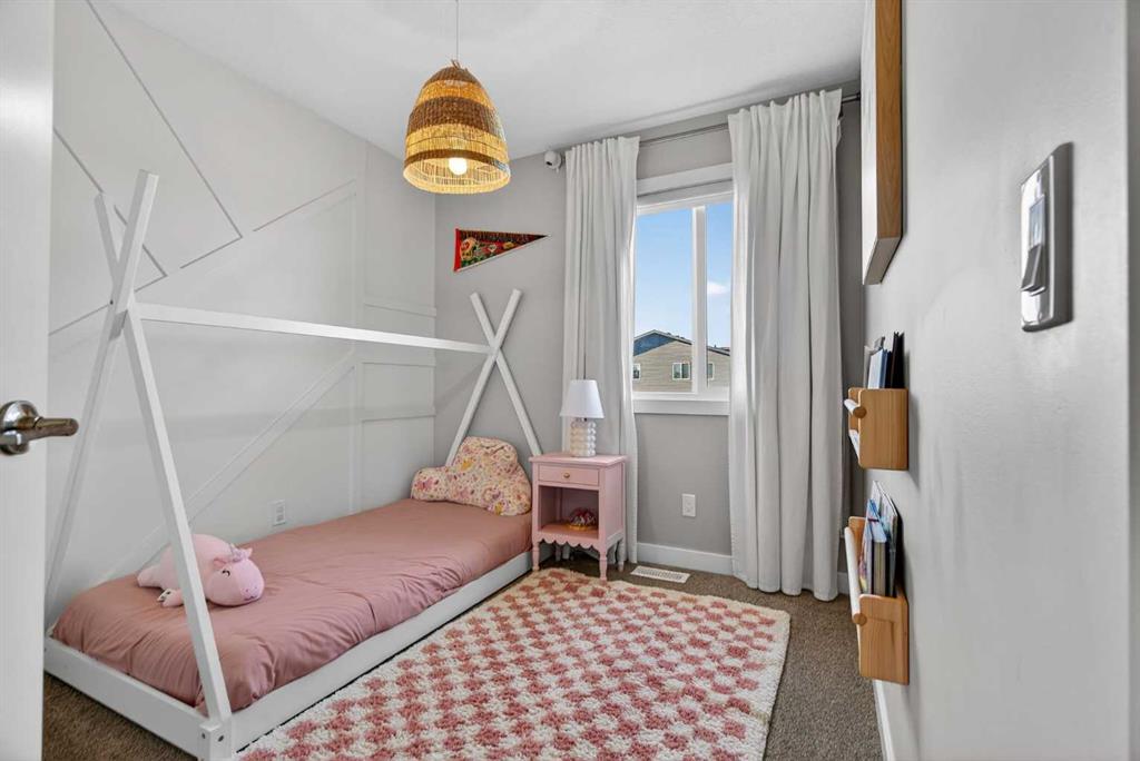Welcome to this beautifully upgraded, better-than-new duplex in the heart of Livingston, offering the modern design buyers love without the added costs, delays, or upgrade surprises of new construction. From the moment you step inside, you’ll appreciate the bright neutral palette, custom wall finishes, and built-in shelving that elevate this home far beyond builder basic. The sun-filled main floor features a spacious living and dining area anchored by a gourmet kitchen complete with crisp white cabinetry, quartz countertops, a statement chimney hood fan, gas stove, refrigerator with water maker, and an upgraded walk-in pantry with custom built-in butler-style cabinetry for exceptional storage and prep space. Upstairs offers three generously sized bedrooms plus a versatile bonus room ideal for a home office, playroom, or additional lounge space. Unlike many new builds, this home is fully complete, including a professionally developed basement with an additional bedroom, full bathroom, large recreation room, stylish custom shelving, and a fully finished bar area perfect for entertaining. Step outside to enjoy a large deck with privacy fencing already in place, while still leaving ample space to build a future double detached garage. With finished landscaping, premium upgrades throughout, and no waiting on construction timelines, this move-in ready home delivers more space, more style, and more value in one of Calgary’s most desirable and growing communities.