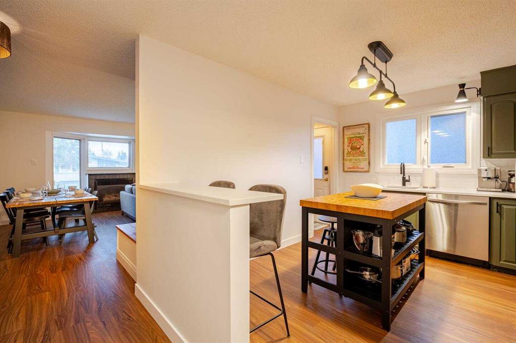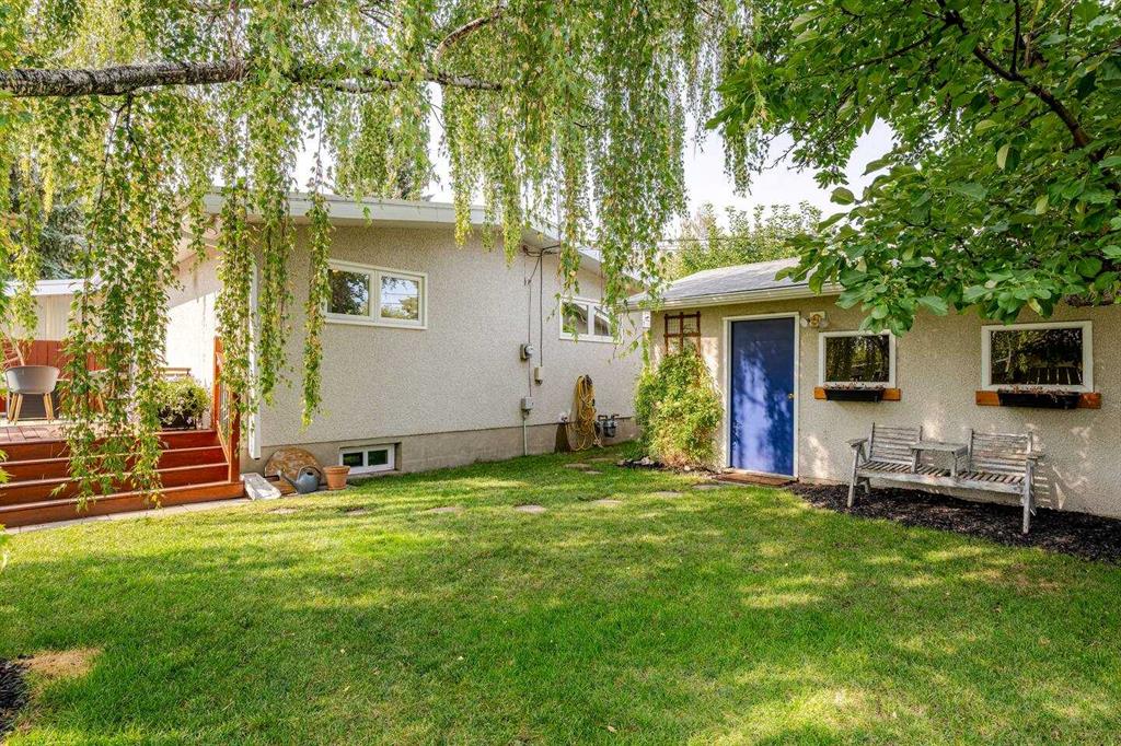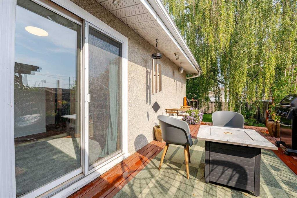 Welcome to this beautifully updated bungalow in sought-after Acadia, offering an open-concept layout, modern finishes, and an incredible private backyard retreat on a massive lot. Step inside to a bright and inviting main floor featuring luxury vinyl plank flooring throughout and a spacious south-facing living and dining area anchored by a cozy gas fireplace—perfect for everyday living or hosting friends. The upgraded kitchen is made for entertaining, complete with quartz countertops, a subway tile backsplash, undermount sink, and new high-performance appliances including a Samsung stove, Samsung dishwasher, and Whirlpool refrigerator. The main level also includes two generous bedrooms and a beautifully renovated full bathroom. Downstairs, the fully finished basement expands your living space with two additional bedrooms, a second cozy wood-burning fireplace, another upgraded bathroom, and an oversized laundry room with a brand-new dryer—ideal for busy households. Outside, you’ll love the front carport and driveway, plus the added bonus of a detached single garage off the laneway. The backyard is truly something special—mature trees, exceptional privacy, and a peaceful retreat vibe. An oversized private deck completes the space, perfect for summer evenings, entertaining, or simply relaxing.