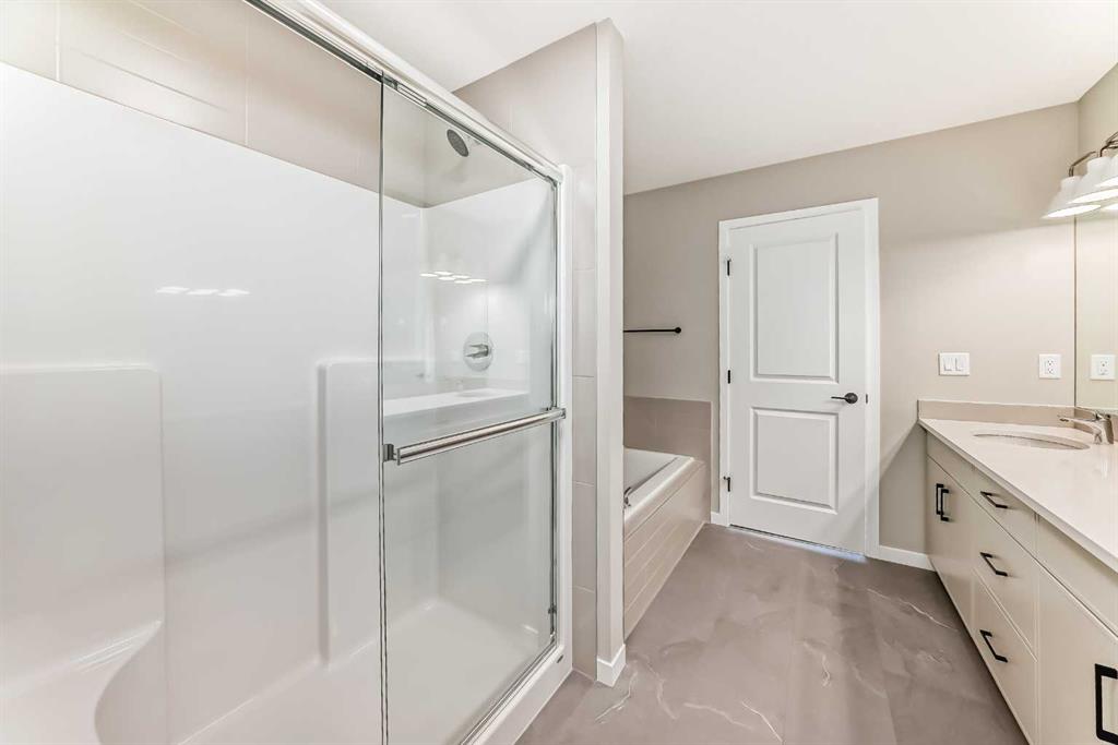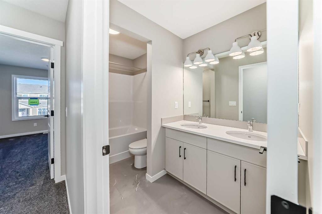 Welcome to 1089 Sawgrass Link NW in the vibrant community of Sawgrass Park — a stunning Grada model by Hopewell Residential offering over 2,100 sq ft of thoughtfully designed living space and ready for immediate possession. From the moment you arrive, the curb appeal stands out with durable Hardie Board siding, modern lines, and a traditional lot with a desirable south-facing backyard — perfect for maximizing natural light and enjoying summer evenings on the future deck (complete with BBQ gas line already installed). Inside, the layout is both functional and impressive. The main floor features luxury vinyl plank flooring, knockdown ceiling texture, spindle railing, and a rare main floor bedroom with a full bathroom, ideal for guests, multi-generational living, or a private home office. The heart of the home is the upgraded kitchen, beautifully appointed with quartz countertops, contemporary cabinetry, stylish backsplash, and a spacious island overlooking the dining area and dramatic two-storey living room. The soaring open-to-below space is anchored by a sleek Allusion electric fireplace, creating a striking focal point while oversized windows flood the home with natural light. Upstairs, you’ll find three additional bedrooms including a spacious primary retreat featuring a walk-in closet and a luxurious 5-piece ensuite with dual sinks, a deep soaker tub, and a separate shower. A generous upper family room provides the perfect flex space for movie nights, a kids’ play area, or a quiet reading lounge. Convenient upper laundry completes the level. The undeveloped basement with a separate side entrance offers incredible future potential — whether you envision additional living space, a home gym, or secondary suite possibilities (subject to municipal approval and permitting). Built by Hopewell Residential, a builder known for quality craftsmanship and thoughtful design, this home blends modern finishes with a family-friendly floorplan in one of Airdrie’s most exciting new communities. If you’ve been searching for a move-in-ready home with space to grow, smart design, and future flexibility — this is it.