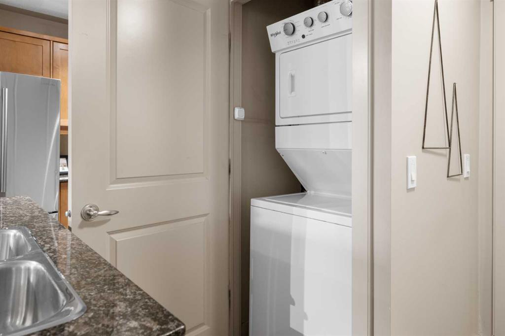 If you’ve been looking for easy, walkable living in the heart of Garrison Woods, this main floor one-bedroom at Gateway Garrison Woods might be exactly what you had in mind. You’re just steps from everything in Marda Loop—coffee shops, restaurants, fitness studios, boutiques—and yes, Safeway is only a short stroll away, making last-minute grocery and morning coffee runs incredibly convenient. Inside, the layout just makes sense. Every inch of space is thoughtfully used, so nothing feels wasted. The open-concept kitchen features newer appliances and a breakfast bar that’s perfect for casual dinners or having friends over. The den is a standout feature, complete with custom built-ins for storage plus a wine and beverage fridge—ideal for working from home or creating a stylish extension of your living space. The living and dining area is bright and spacious, with direct access to your private patio and gate, giving you that easy in-and-out access that only a main floor unit can offer. The primary bedroom is generously sized and sits right next to the four-piece bathroom, and of course, there’s the everyday bonus of in-suite laundry. Beyond your front door, you’re close to the river pathways, the sandy shoreline at Sandy Beach Park, and the popular off-leash area at Altadore Off Leash Dog Park. You’re also just minutes from Mount Royal University, The scenic pathways in North Glenmore Park, downtown, and transit routes. It’s the kind of location that makes day-to-day life feel effortless—whether you’re heading out for a walk, meeting friends in the Loop, or grabbing groceries on the way home. Included in the price of this home is a titled, heated underground parking stall. Another great benefit is the affordable condo fees which include heat, water, sewer and electricity.