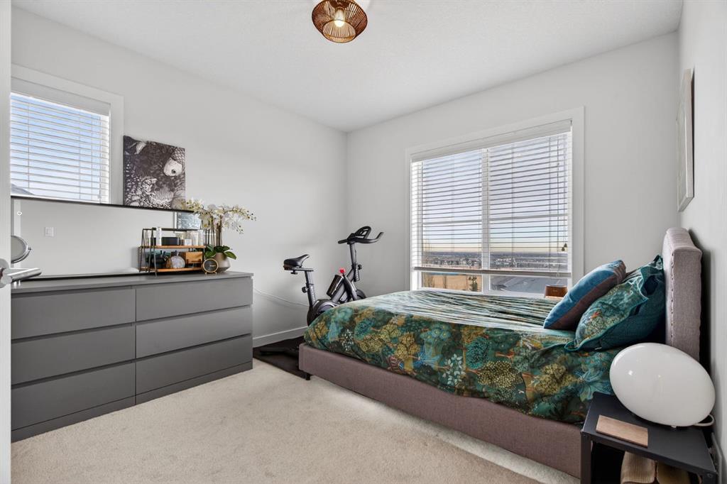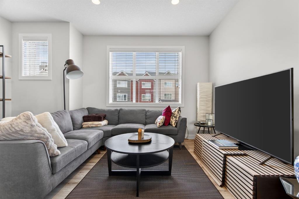 Welcome to this beautifully appointed corner end-unit townhouse in the sought-after community of Nolan Hill, offering 1,427.61 sq ft of thoughtfully designed living space, stunning city views, and exceptional natural light throughout. Perfectly positioned in the heart of the complex, this home enjoys a quieter interior location while still being just minutes from everyday amenities including Costco, T&T Supermarket, shopping, restaurants, and quick access routes in and out of the city. The main level features a bright and open-concept layout with expansive windows that flood the space with natural light. The stylish kitchen showcases white cabinetry, modern hardware, stainless steel appliances, quartz countertops, a sleek tile backsplash, and direct access to the private balcony — the perfect place to enjoy morning coffee while taking in the elevated city views. The kitchen flows seamlessly into the dining area and spacious living room, creating an ideal setup for both everyday living and entertaining. Upstairs, you’ll find three generous bedrooms including a stunning primary retreat with large windows and beautiful views. The additional bedrooms are well-sized and ideal for guests or family. The home also features a tandem double attached garage, offering secure parking for two vehicles plus additional storage — a rare and valuable feature in townhouse living. With its corner positioning, extra windows, quiet interior location, functional layout, and incredible convenience to major amenities, this Nolan Hill townhouse delivers the perfect balance of comfort, style, and accessibility.