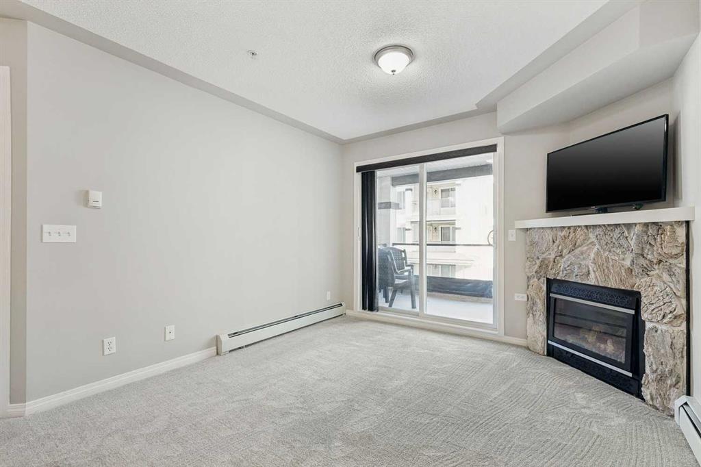 IMMACULATE, FRESHLY RENOVATED 1 BED+DEN, 1 BATH UNIT WITH TITLED, HEATED UNDERGROUND PARKING IN THE DESIRABLE COMMUNITY OF ROCKY RIDGE! This apartment boasts freshly painted walls, bright oversized windows & new carpet + luxury vinyl plank flooring. The kitchen features new white custom cabinetry with ample storage space, cabinet pantry, a peninsula breakfast bar & black appliances, opening onto the living room with gorgeous stone clad gas fireplace & sliding glass doors onto the spacious balcony with an extra 4’5” x 3’4” storage area. The king size bedroom is sunny with a good-sized closet. 4-piece bathroom with luxurious tub & extra storage space. The den features a beautiful French door & the laundry room exists in unit for your convenience. The parking stall is only 2 spaces away from the elevator doors for ease of travel to your suite. Other amenities in the complex include a fitness room, party/games room, salon & dining room. Walking distance to walking paths, parks, playgrounds, schools, coffee shops, restaurants, health services, gas station, grocery store, veterinary clinics & The Tuscany LRT station not to mention minutes from the Shane Homes YMCA at Rocky Ridge, Costco, Bearspaw Golf Course, Bowness Park, Nosehill Park, Macleod Trail, Stoney Trail, Country Hills Blvd & only 30 minutes to the mountains!
