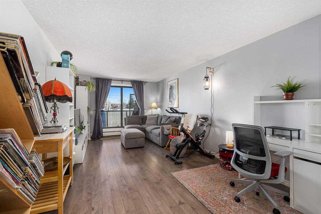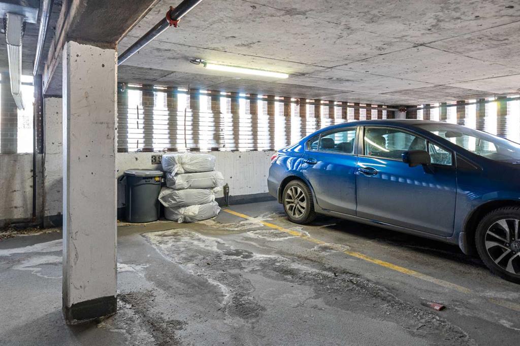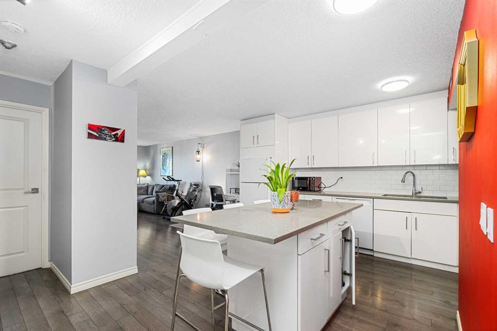 Big on space, big on lifestyle, and refreshingly removed from the downtown rush (while remaining conveniently central) - this 758 sq ft one-bedroom offers something many inner-city condos don't: room to actually live. In a market full of compact one-bedrooms, this floorplan offers generous proportions that can accomodate full-sized (not fun-sized) furniture, truly setting it apart. The layout feels open and intentional, anchored by a massive kitchen island that naturally becomes the centre of the home in this unique and modern kitchen. Sleek white surfaces that look stunning and contemporary give the whole home a polished and bright feel, while ample cupboard space and large storage closets allow for condo living to be organized, rather than the chaos of living with a single kitchen drawer. Lastly, a private balcony that is spacious enough for a bbq AND comfortable seating is just begging for summer weather to be fully enjoyed. This condo building also stands out from the market, with an elevator, only 6 floors (no need to battle 20 other floors for said elevator), concrete build (think about the privacy without the noise transfer!), secure indoor parking, and an incredible rooftop patio with skyline views! If that wasn't enough, the neighbourhood is bursting with parks, pathways, courts for several different sports, a skating rink, multiple dog parks and even a community garden just steps away for those who love condo living but also have a green thumb. Well-connected by transit and bikepaths, you'll have no problem getting around while living here, plus there's plenty of street parking if you prefer to drive. You'll also be steps away from shopping, the C-Train, groceries, trendy restaurants, cozy coffee shops, yoga studios and more, so exploring your own neighbourhood will never get old. For buyers who want inner-city energy without inner-city intensity (and who also value square footage, parking, and thoughtful updates), this condo quietly stands apart. Come take a look for yourself!