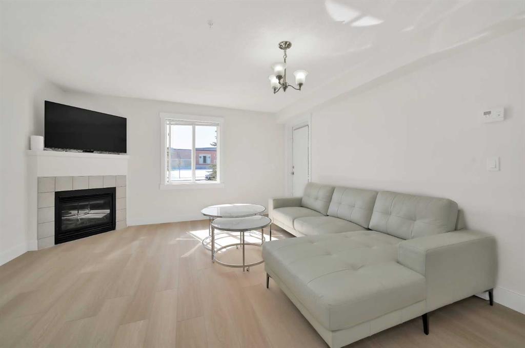 Large windows fill the living space with natural light, highlighting the cozy gas fireplace—a perfect spot to unwind. The two comfortable bedrooms offer ample space, while the updated 4-piece bathroom with a whirlpool tub adds a touch of practicality. Best of all, condo fees cover all utilities (heat, electricity, and water), making budgeting a breeze for first-time buyers.