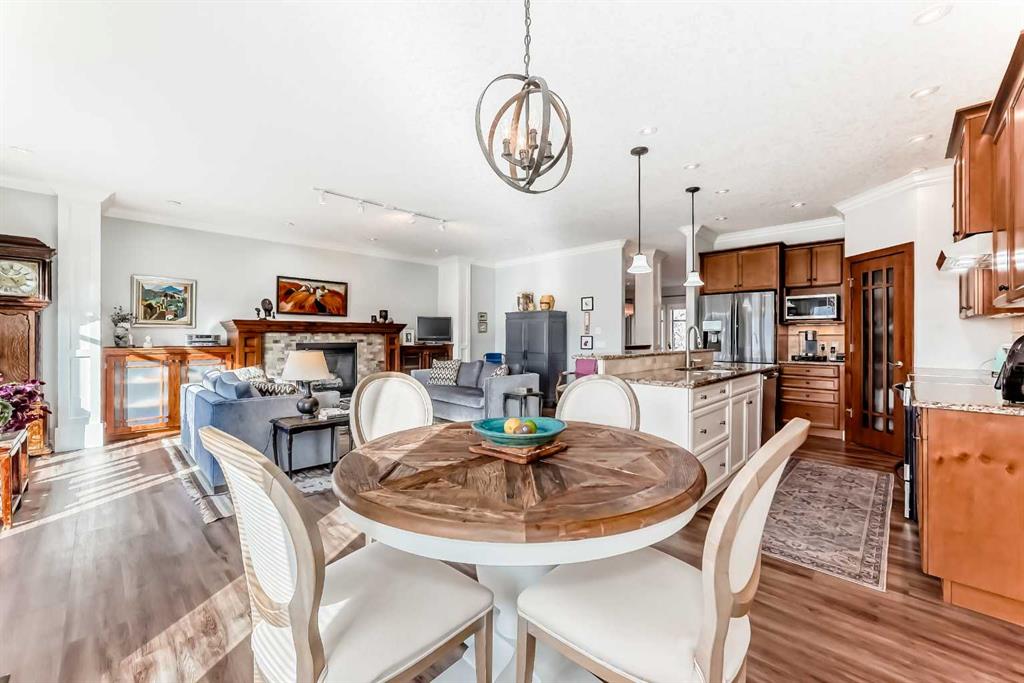 DOWNSIZE IN STYLE WITHOUT COMPROMISE- this IMMACULATE BURNTWOOD (55+), 3 BDRM (1+2) WALKOUT BUNGALOW VILLA with Double Attached Garage is set back in the heart of Bridlewood Estates.-- QUIET LOCATION, BACKING S.W. INTO THE GREEN SPACE & PATH SYSTEM. Empty nesters will love the Upgraded HARDIE BOARD exterior, CONCRETE tile roofing, 9’ flat ceilings, HEATED FLOORING, custom crown mouldings, 2 GAS FIREPLACES & MISSION style woodwork! Bright, open & functional floorplan (just over 2750 ft2) with spacious tiled front foyer, FORMAL DR, large LR w/ impressive stone surrround fireplace, mission style mantle/built-in cabinetry & shelving. Granite Island kitchen has 2 eating areas, corner pantry, stone tile backsplash & stainless-steel appliances. The breakfast nook overlooks the expansive green space with a 22 foot deck (S.W. facing) -easily fits a large patio set/entertaining area.- Large primary suite w/ walk-in closet, beautifully updated ensuite w/ heated floors, shower and Jacuzzi tub. The main level is complete with a powder room and convenient laundry room (SxS W+D). Walkout lower level has wide open family room featuring a gas fireplace, built-ins, spacious additional bedroom, and a full bathroom. There’s also a versatile room that is ideal for an office, hobby space, rec room, or potentially an additional bedroom plus plenty of storage. Large concrete patio downstairs to green space. No CONDO FEE —just a low $180 HOA fee covering lawn care, snow removal, and irrigation. THIS HOME has AIR CONDITIONING! Visit our Open Houses on Feb 28th/March 1st, 2-4PM and see WHAT DOWNSIZING IN STYLE CAN LOOK LIKE!