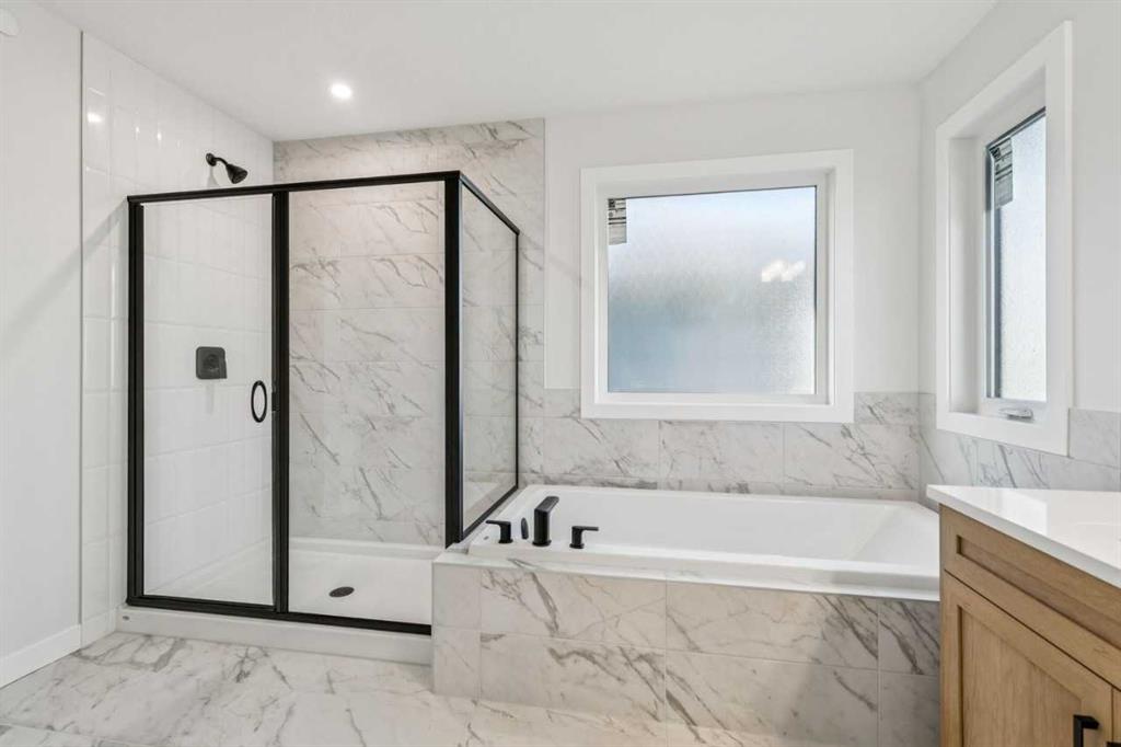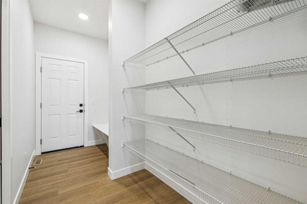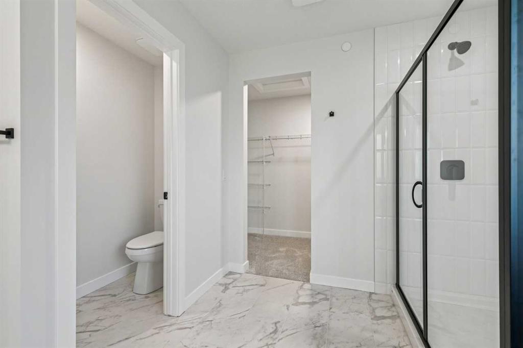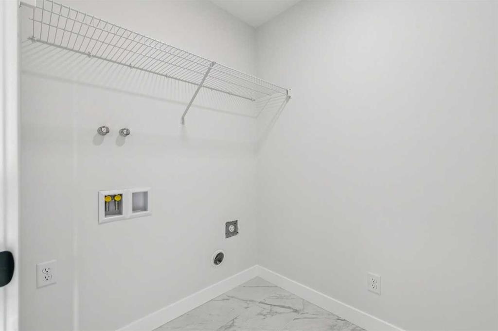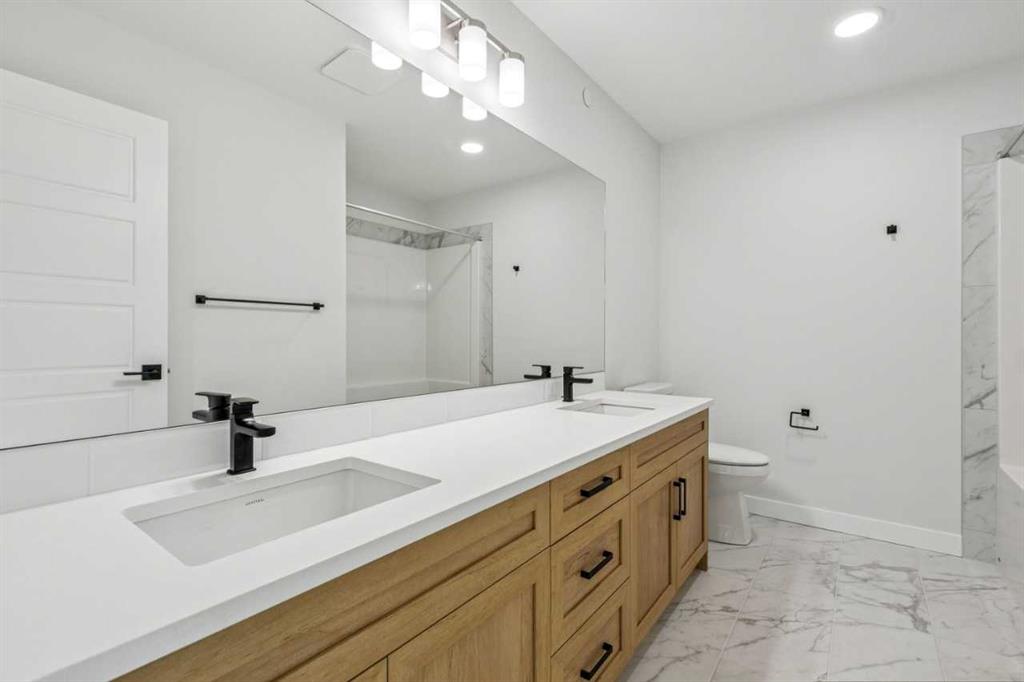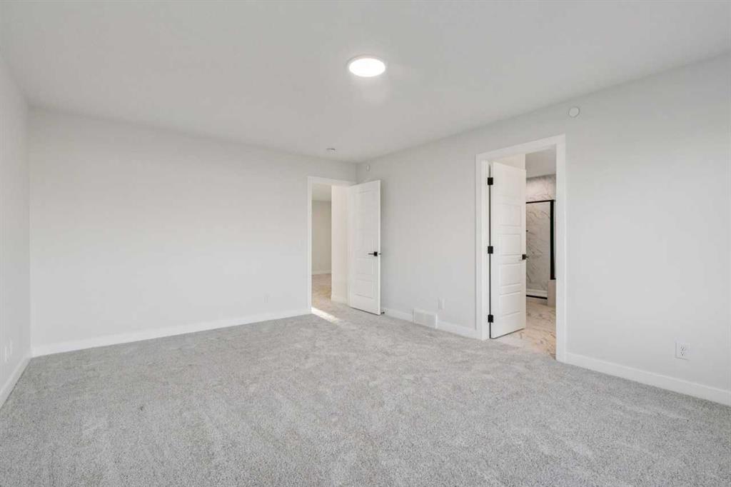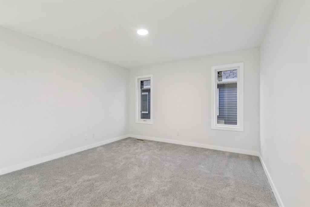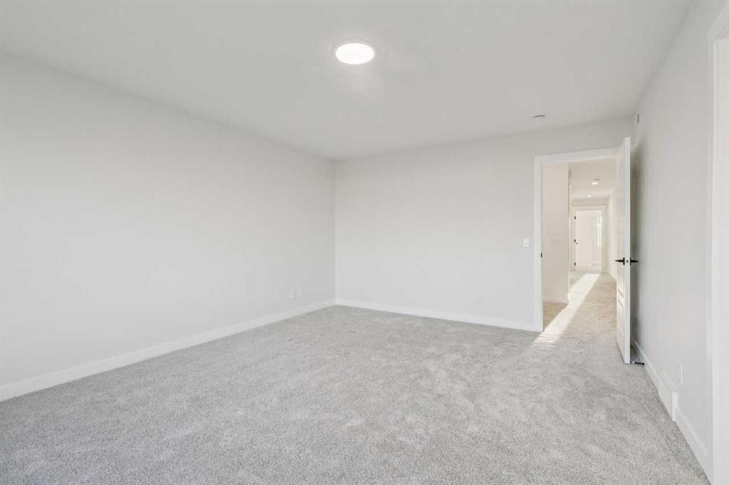 Welcome to The Sutton by NuVista Homes, located at 144 Hotchkiss Common SE in the growing community of Hotchkiss. This well-appointed 2,554 sq ft home offers 4 bedrooms and 2.5 bathrooms with thoughtful upgrades throughout. The main floor features 9’ ceiling heights, luxury vinyl plank flooring, a flex room, and a bright open-concept great room with a natural gas fireplace finished with tile to the ceiling. The kitchen includes quality cabinetry with taller upper cabinets, quartz countertops, a walk-through pantry, and excellent flow for everyday living and entertaining. Upstairs, the spacious primary bedroom features a five-piece ensuite and walk-in closet, complemented by three additional bedrooms, a full bathroom, a central bonus room, and a laundry room with built-in shelving. A side entrance, 9’ foundation, two extra feet of garage width, and basement rough-ins provide excellent future development potential. Photos are representative.