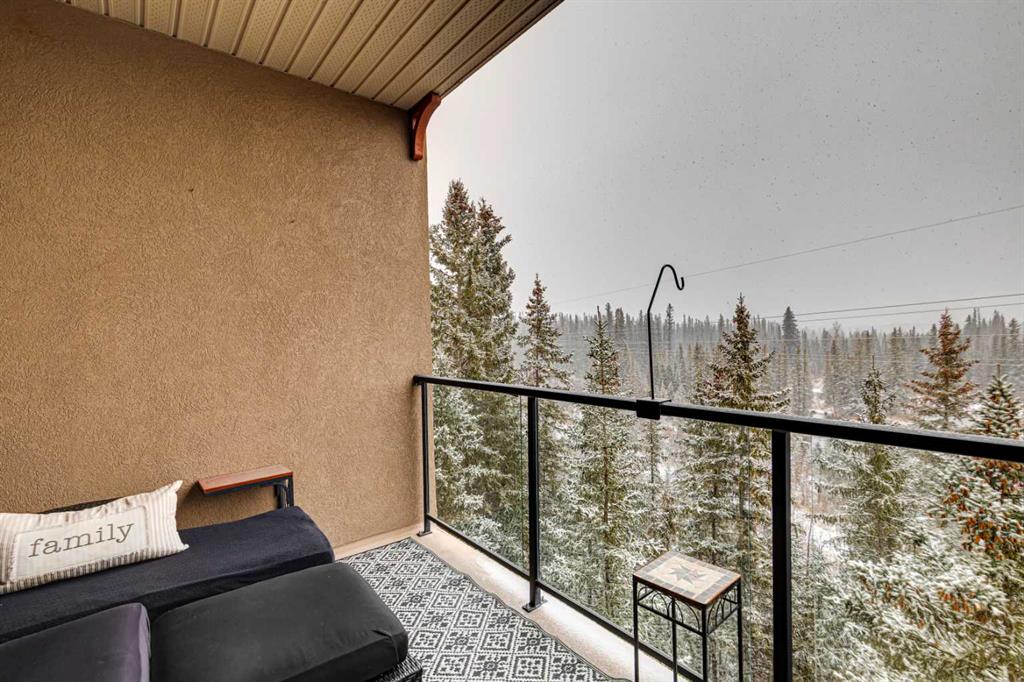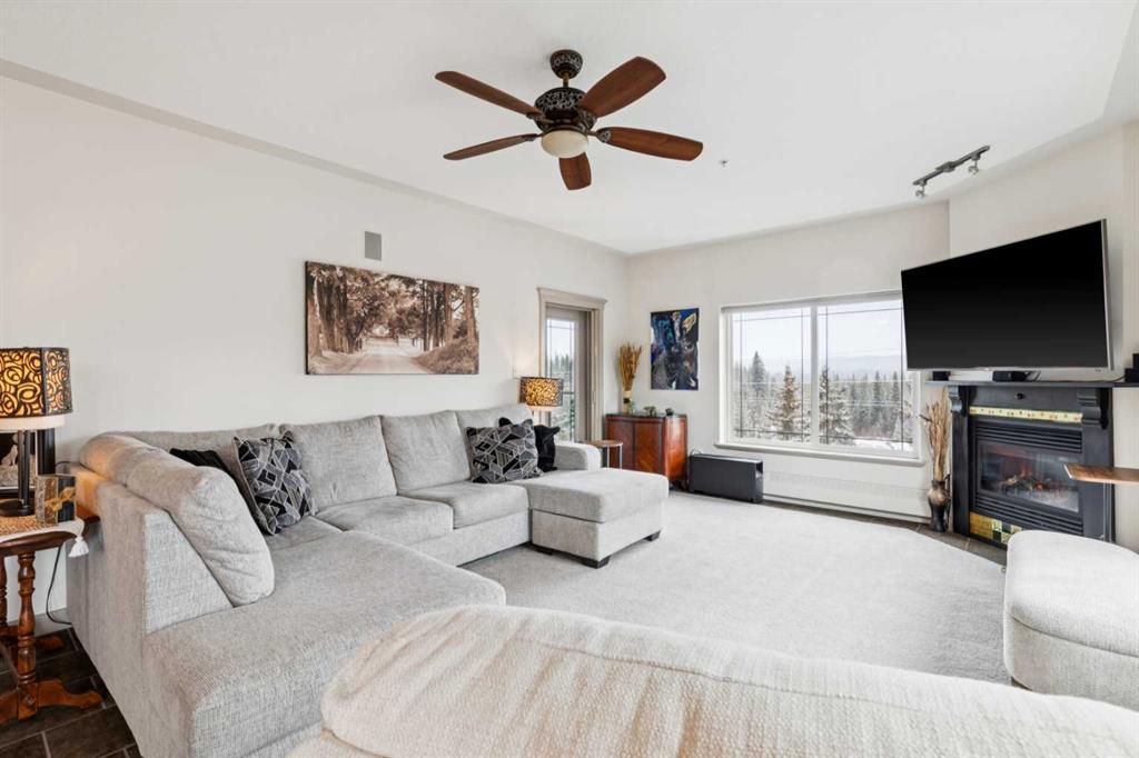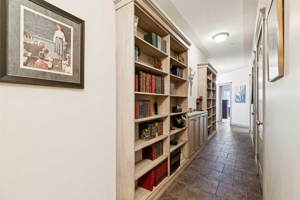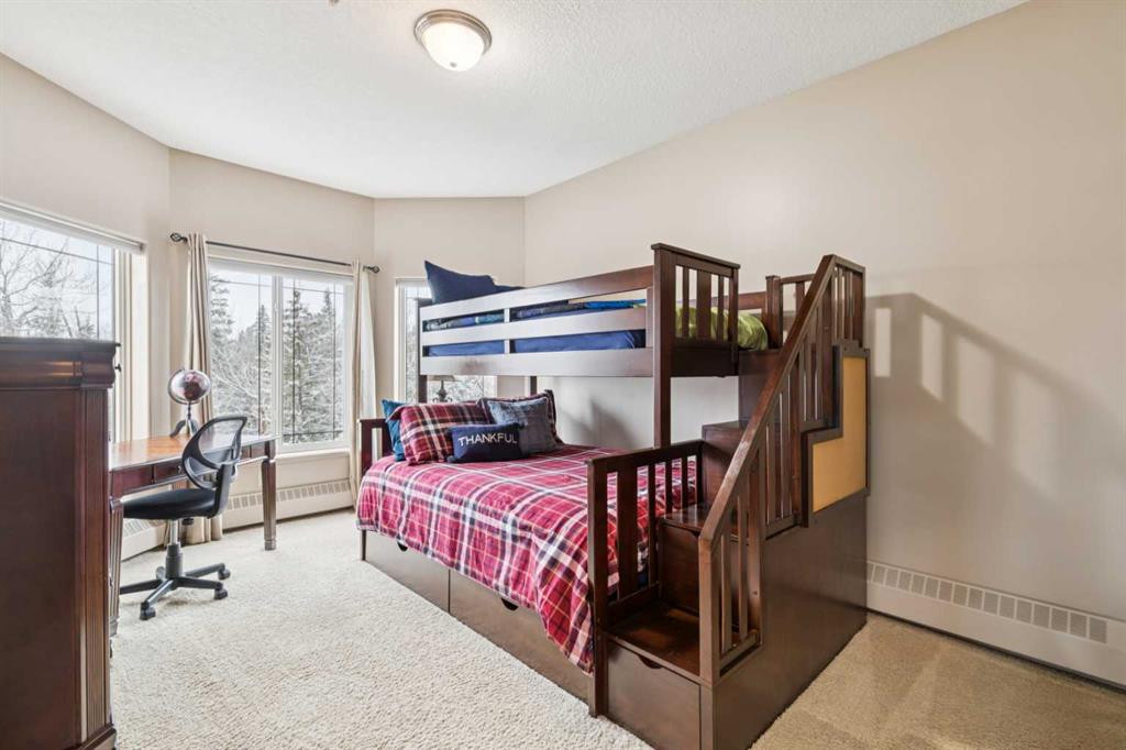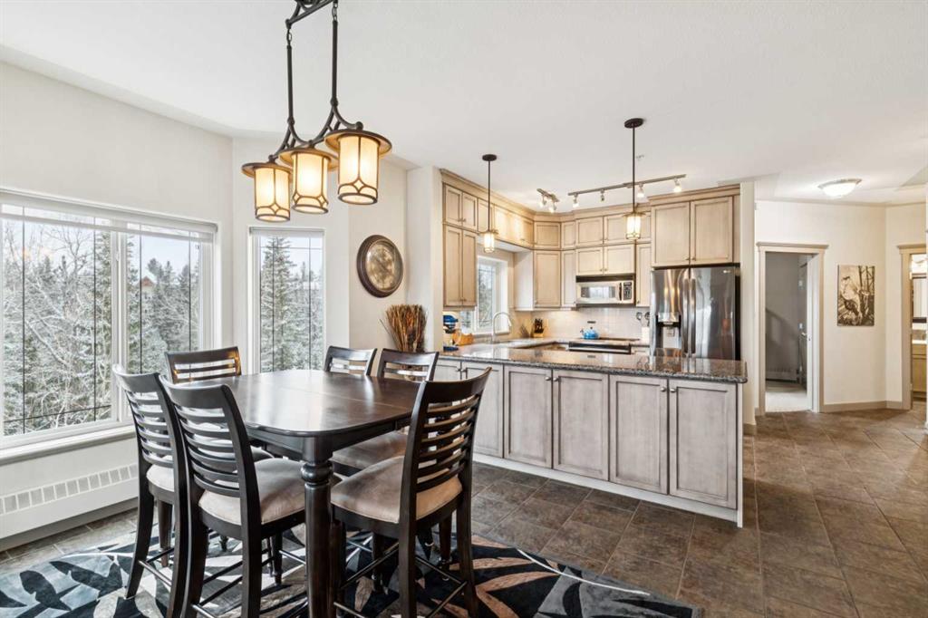 Rarely does a condo this spectacular ever become available for purchase. This expansive corner unit perched on the 4th floor boasts incredible views of Griffith Woods, the river and nature, with abundant natural light & warmth, just above the treetop elevation. Every single room offers something unique and special, simply unmatched by any other unit. With 9ft ceilings, walls of windows, total privacy and high end, updated appliances and design, this 1372 SqFt condo offers the best of condo living, in the best location. A generous foyer greets you with double closet and flows down the hallway with feature built in shelving. Convenient, spacious laundry room is on one side, along with the central 3pc bathroom. A spacious bedroom overlooks the trees with enough space for various layouts. The beautiful kitchen features full height cabinets & back splash, undermount lighting, pendant lighting, quartz countertops and high end s/s appliances including a newer induction cooktop range. There is also a dedicated pantry and under counter storage for optimal convenience. The main kitchen, dining and living rooms blend together while overlooking the serenity and beauty of nature, with blue jays, owls, wildlife and the winding river below. Enjoy the views in total privacy with a cozy corner fireplace or the covered balcony where every day feels like you are living in a mountain resort dream. The primary bedroom overlooks the river, features a generous walk through closet and large 4pc ensuite. An additional assigned storage is located with the excellent titled parking space right near the elevator. There are incredible walking paths, tennis/pickle ball courts and a fitness facility in the complex. Well managed and offered in absolutely pristine condition. This is a special condo for the most discerning buyer. The views, layout and move-in ready condition will take your breath away. Welcome home!