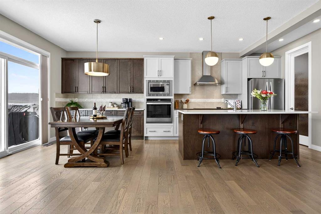 Welcome to the best value in Sunset Ridge! As you step into this beautiful home, you’re welcomed by gleaming hardwood floors and an abundance of natural light. The open-concept floor plan is perfect for entertaining and extends seamlessly to an east-facing balcony and a fenced, irrigated backyard that backs onto expansive green space—offering the privacy of no rear neighbours. The main floor features a private den with glass French doors, ideal for working from home. The chef-inspired kitchen showcases a large island with quartz countertops and bar seating, a stainless steel French-door refrigerator, and built-in microwave and oven. Extended cabinetry into the dining area provides exceptional storage, while the convenient walkthrough pantry connects the mudroom directly to the kitchen. The inviting living room features a cozy gas-burning fireplace, and a two-piece powder room completes the main level. Up the elegant curved staircase with wrought-iron spindles, is the primary bedroom This retreat offers a luxurious five-piece ensuite with dual sinks and a stand-alone soaker tub, along with a walk-through closet that leads directly to the laundry room for ultimate convenience. Two additional bedrooms, a generous bonus room and a four-piece bathroom complete the upper floor. The fully finished walkout basement is designed for entertaining, featuring two additional bedrooms, a four-piece bathroom, and beautiful views of the backyard and surrounding green space. Additional highlights include a double attached garage and central air conditioning. Ideally situated close to schools, parks, scenic walking trails, and shopping, this exceptional home combines comfort, style, and an unbeatable location.