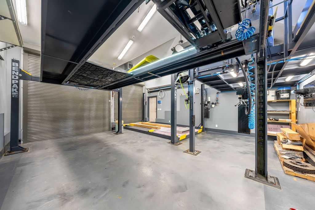 THE OVERSIZED MECHANIC’S DREAM GARAGE IS TRULY ONE-OF-A-KIND! featuring a mezzanine and massive 9'x10' oversized doors large enough to accommodate an RV plus a fully outfitted workspace complete with compressed air lines, fixed machinery & equipment, a 9000 LB 4-POST LIFT, 14,000 LB 4-POST LIFT, and an 80-GALLON AIR COMPRESSOR. With the installed lifts, UP TO 4 VEHICLES CAN BE PARKED INSIDE, an exceptional opportunity for mechanics, collectors, hobbyists, or anyone needing serious functional space.