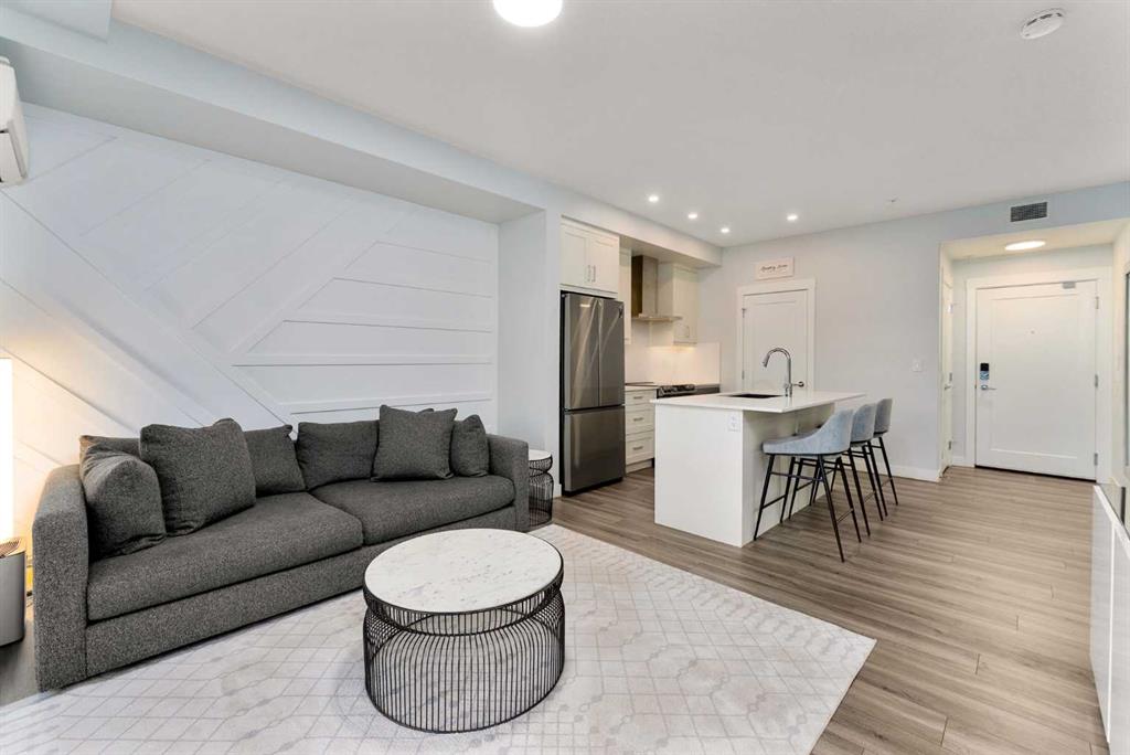 Welcome to this beautifully maintained 2-bedroom, 2-bath condo in the heart of Auburn Bay—a home that truly shows like new. Built in 2021, the original owner invested in thoughtful upgrades throughout, and it has been meticulously cared for from day one. Step inside to an inviting open-concept floor plan that feels bright, airy, and effortlessly functional. The timeless white kitchen is a standout, featuring stainless steel appliances, under-cabinet lighting, stunning herringbone tile detail, and a generous island with a huge undermounted sink and convenient pull-out shelving for optimal storage. Just off the kitchen, the spacious laundry room offers built-in cabinetry—perfect for a coffee bar, extra pantry storage, or everyday organization. The living room features a beautiful custom accent wall and is filled with warmth and natural light thanks to the massive west-facing patio doors that open onto your own ground-level balcony—ideal for enjoying Calgary’s sunny afternoons. The primary bedroom comfortably fits a king-size bed and includes two upgraded closets with extra built-in shelving for optimized storage, along with its own private 3-piece ensuite. The second bedroom is perfect as a home office, guest room, gym, or flexible space to suit your lifestyle, and it conveniently connects to both the main living area and the second 4-piece bathroom. The entire unit has been freshly painted and features central air conditioning, ensuring comfort year-round. The location within the building is unbeatable—just steps from the stairwell leading directly to the heated underground parkade, where your titled parking stall awaits. And of course, living in Auburn Bay means enjoying one of Calgary’s most desirable lake communities. Residents have exclusive access to Auburn Bay Lake, offering year-round recreation such as swimming, paddleboarding, skating, fishing, and vibrant community events. The neighborhood is also home to scenic walking paths, parks, playgrounds, and quick access to shopping, dining, the South Health Campus, and major roadways. Whether you love the outdoors, convenience, or a strong community vibe, Auburn Bay delivers it all. This is the perfect blend of comfort, style, and location—truly a condo you won’t want to miss.