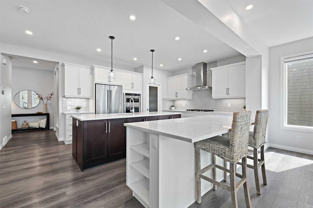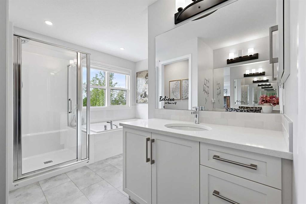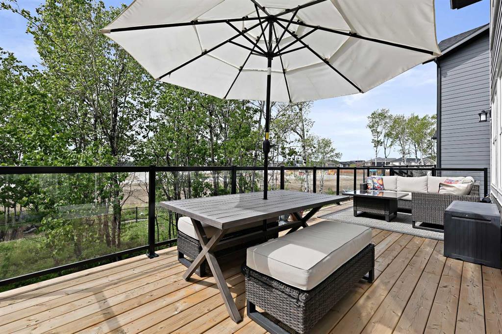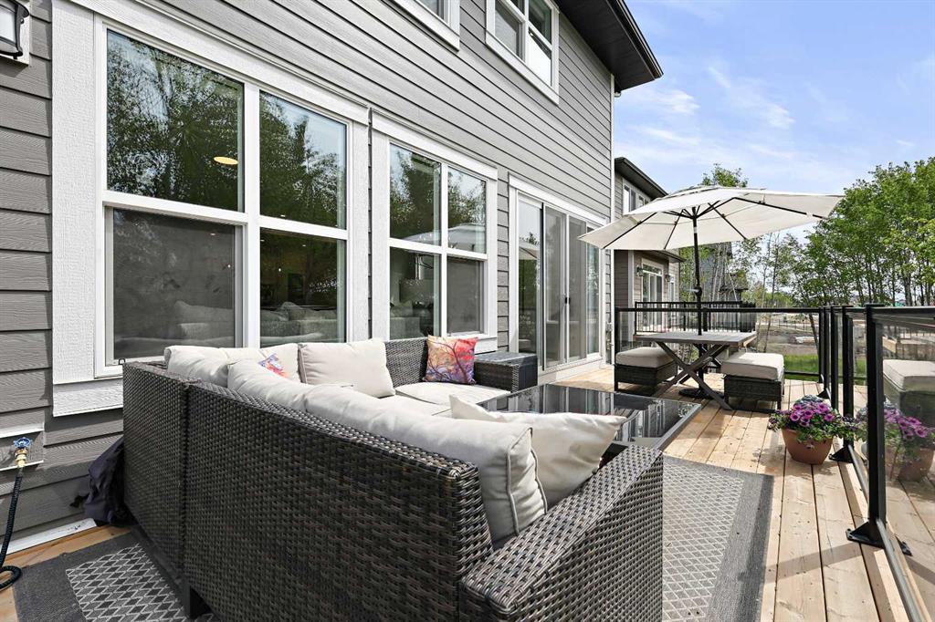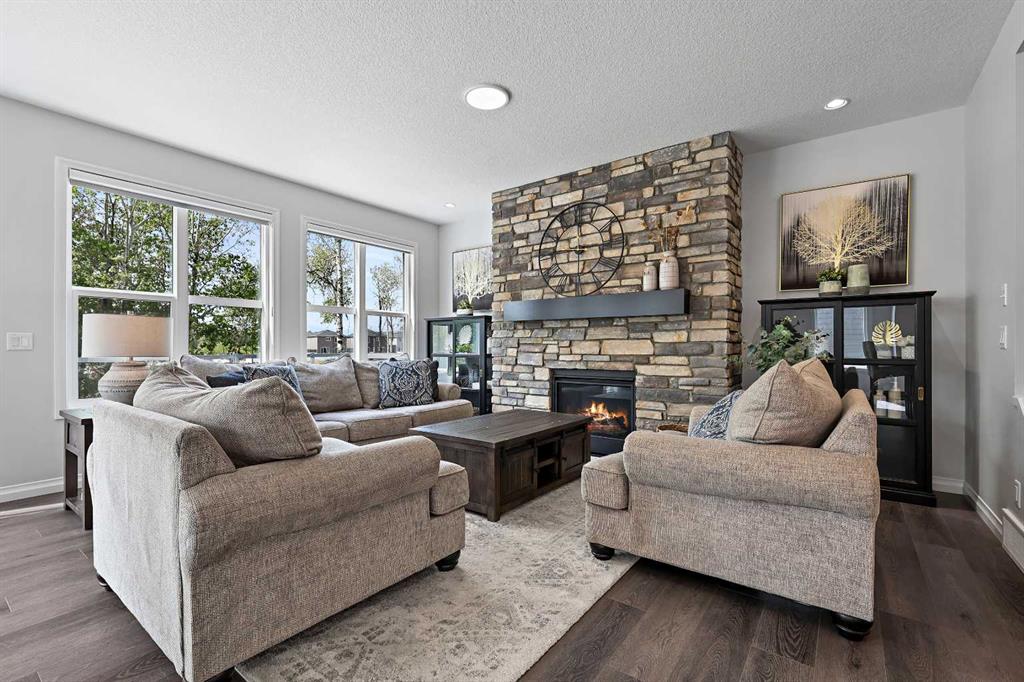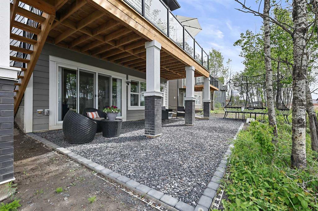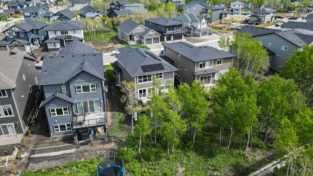 Welcome to your private retreat! This beautifully designed fully finished walk-out home offers elevated living surrounded by natural beauty. Situated on a spacious, 7071 sq ft, tree-lined lot, this property blends refined comfort with the tranquility of a forested setting. Step inside to discover a thoughtfully crafted floor plan with expansive windows that flood the home with natural light and offer picturesque views of the large, nature inspired yard. Enjoy seamless indoor-outdoor living with direct walk-out access to your backyard oasis—perfect for entertaining or quiet evenings under the stars. Upstairs, the elevated main living area boasts soaring ceilings, elegant finishes, and an inviting open-concept layout ideal for both relaxation and hosting. The chef’s kitchen flows effortlessly into a cozy living room with a fireplace and a dining area with forest views and sliding patio doors to your 26ft deck. The ease of entertaining blends naturally from the expansive prep island to the extended flush eating bar showcasing the Ivory Coast Quarts counter tops, ample cabinetry with a 36" KitchenAid gas cooktop,Built-in wall oven with microwave combo,dishwasher with stainless steel interior,counter depth refrigerator with internal water and ice and a Venmar Chef 36" designer hood fan. The walk-in pantry blends seamlessly with the kitchen area while the upgraded black matt hardware throughout adds a distinct style and modern feeling. Truly a home that features an urban decor while maintaining a classic and timeless ambiance. The floor to ceiling Kingsman feature fireplace with stone surround brings you back to the woods feel while the abundance of windows added to this home and sleek selections offer you a hotel inspired stay. Retreat to a spacious primary suite featuring a spa-like ensuite including dual vanities,make-up niche, over sized bath,stand alone shower and huge walk-in closet that connects to the 2nd floor laundry. Additional bedrooms and centralized Bonus Room separating the the two wings for added privacy is always appreciated. Tray ceilings compliment the Primary Bedroom and Bonus Room along with double French Doors. A fully developed lower level offer room for family, guests,or home office. Dual Primary Suites are featured with each having their very own en suite and a secondary laundry room along with a cozy living room area that opens up to the back yard. For the hobbyist or car enthusiast,the triple attached garage provides ample space for vehicles,tools,and storage. Next to new, this Jayman BUILT home offers over 3500+sqft of extraordinary living space. The complete package being fully finished, walk-out, triple attached garage, Hardie Planked in Legacy Woods with an immense list of custom, chosen upgrades allowing you to move into a newer build without the wait or timeline. Located in a serene, almost finished neighborhood, yet just minutes from city amenities, this home truly offers the best of both worlds—privacy, space, and modern luxury.