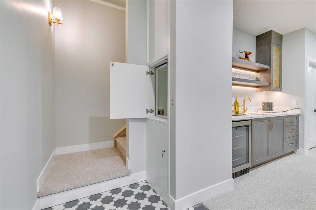 A rare and highly practical dumbwaiter elevator connects the garage and lower level directly to the kitchen — an exceptional feature seldom found in Calgary infills.